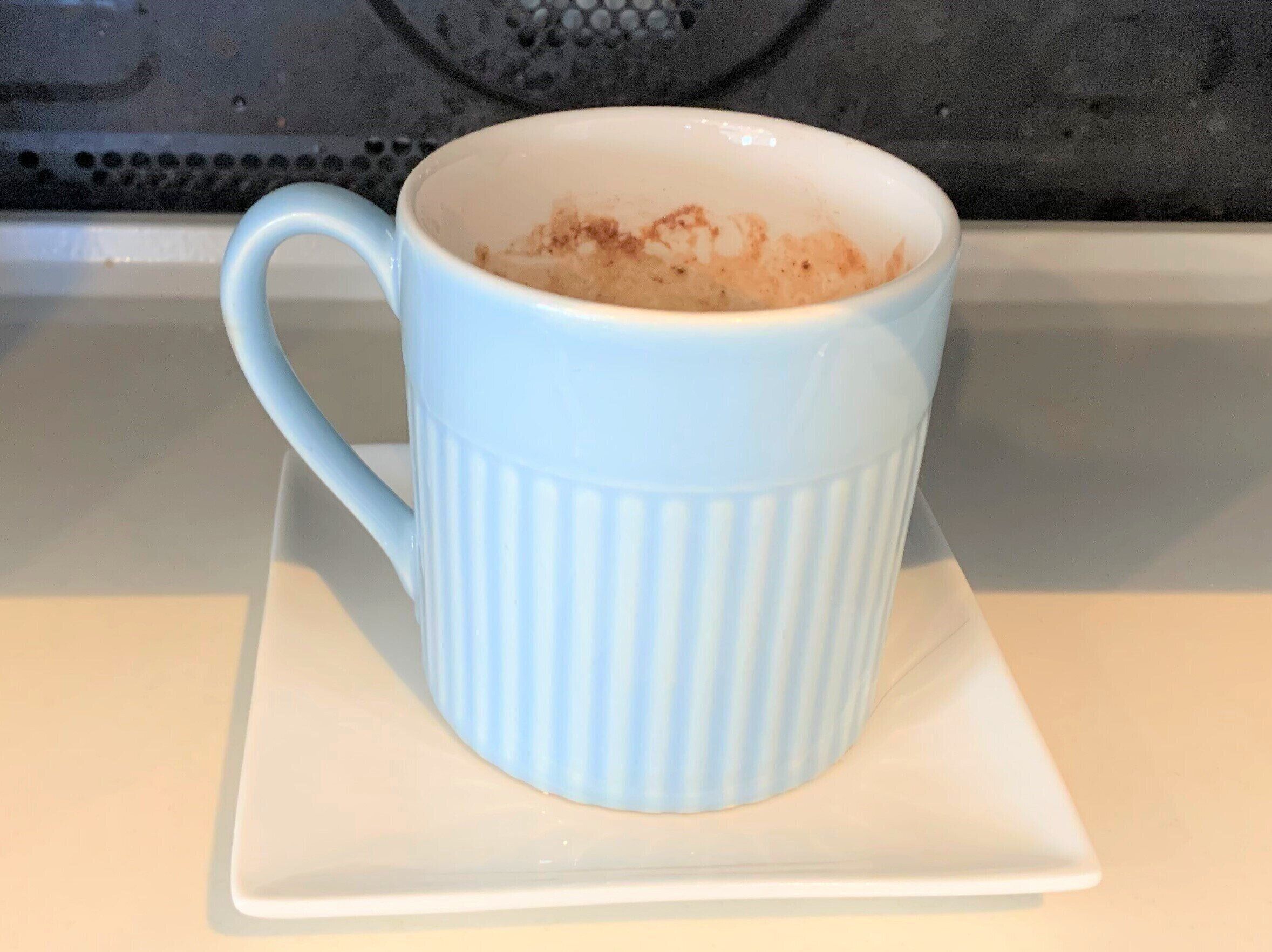 混ぜてレンチンするだけなので、わずか数分で作れる手軽さ。さらにはマグカップしか使わないので、洗い物も最小限。がっつり甘い物が食べたい時に作っています。コンビニに走るより早いですよ~!