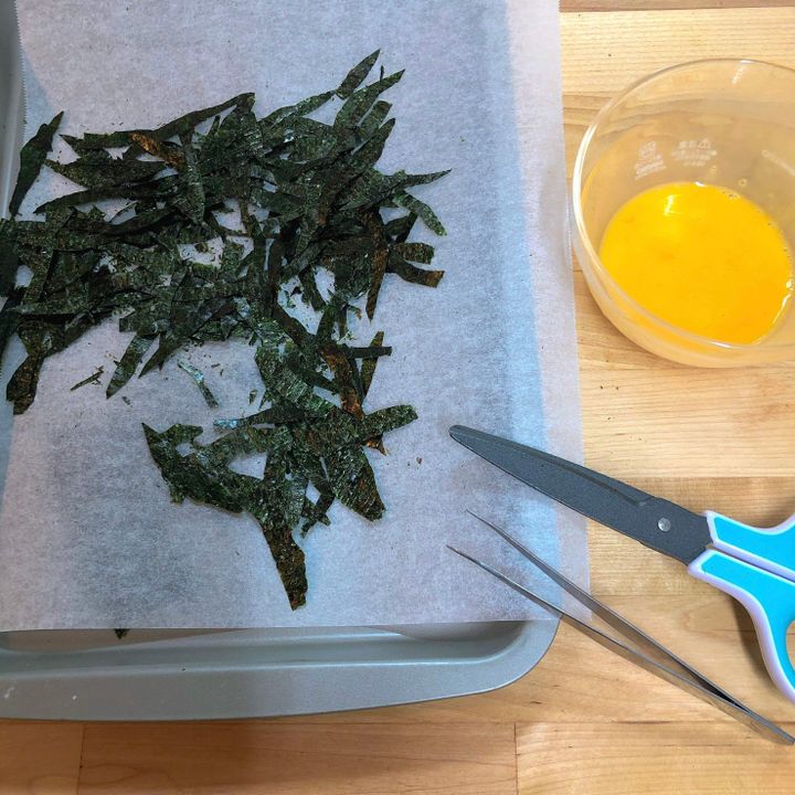 ⑻ 刻んだ海苔を乗せる。柄の出方はお好みで。