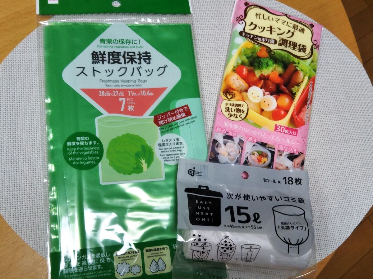 写真1枚目の鮮度保持ストックバッグはダイソーにて購入しました。