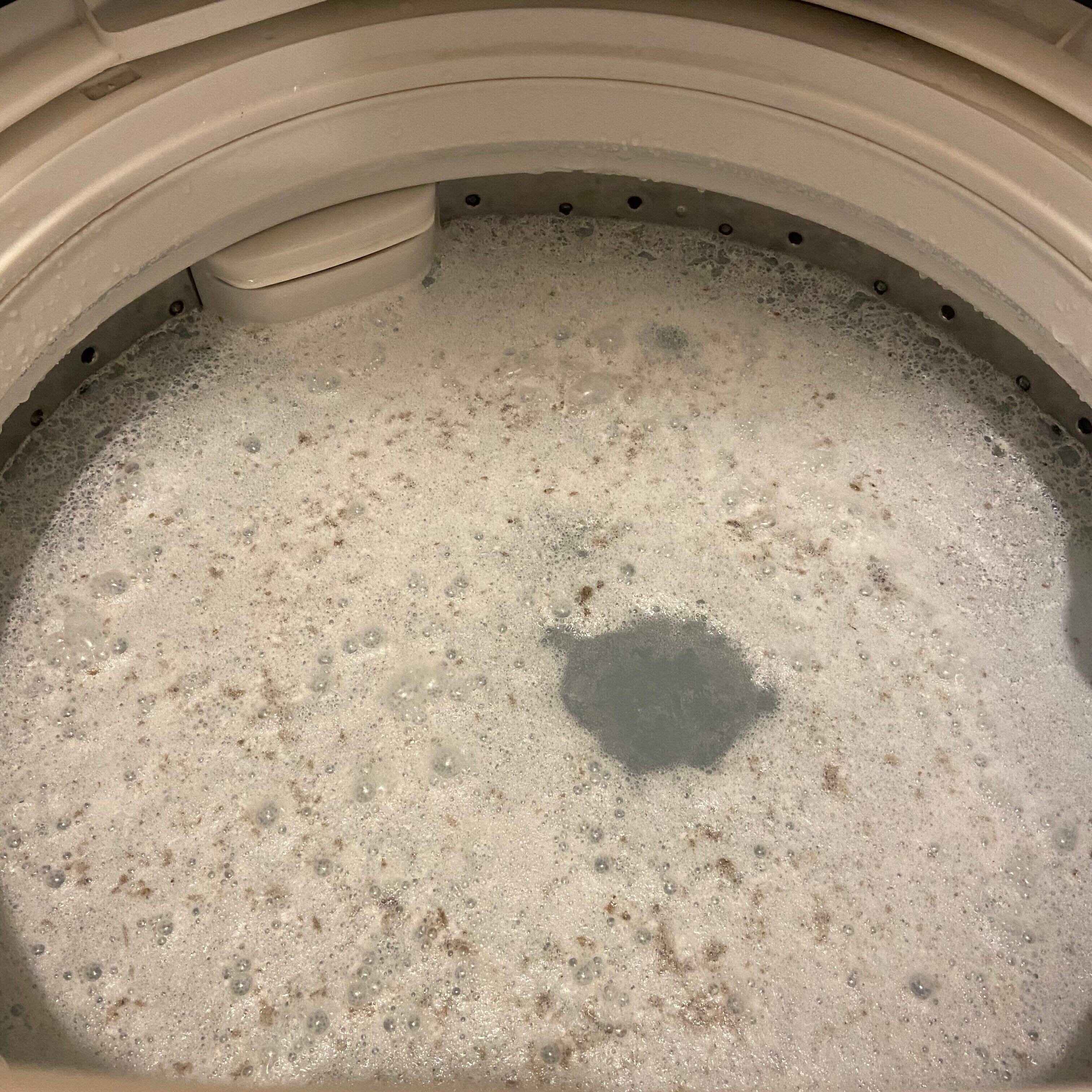 フタを開けてびっくり!恥ずかしいですが、いちばん最初に使った時はもっとひどかったです。月に1回は市販の洗濯槽クリーナーでお手入れをしていたので、期待せずに使ってみましたが、ごっそりと取れた黒い汚れに驚きました。