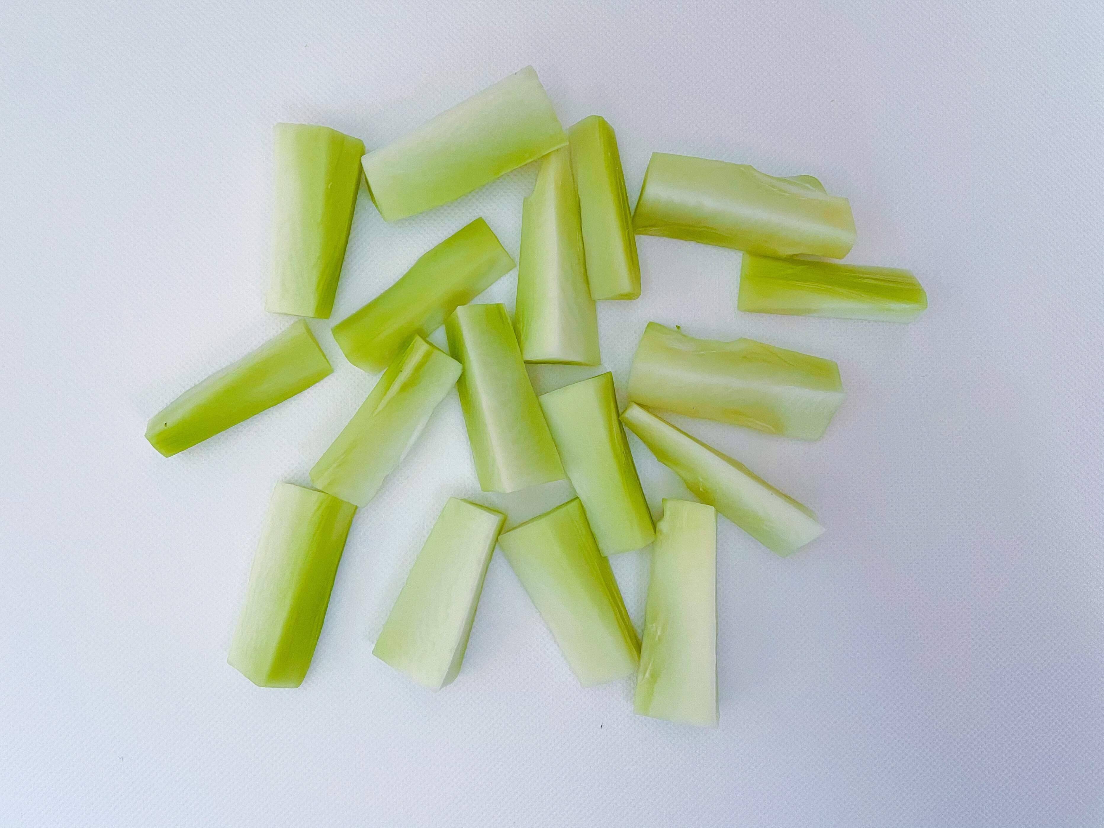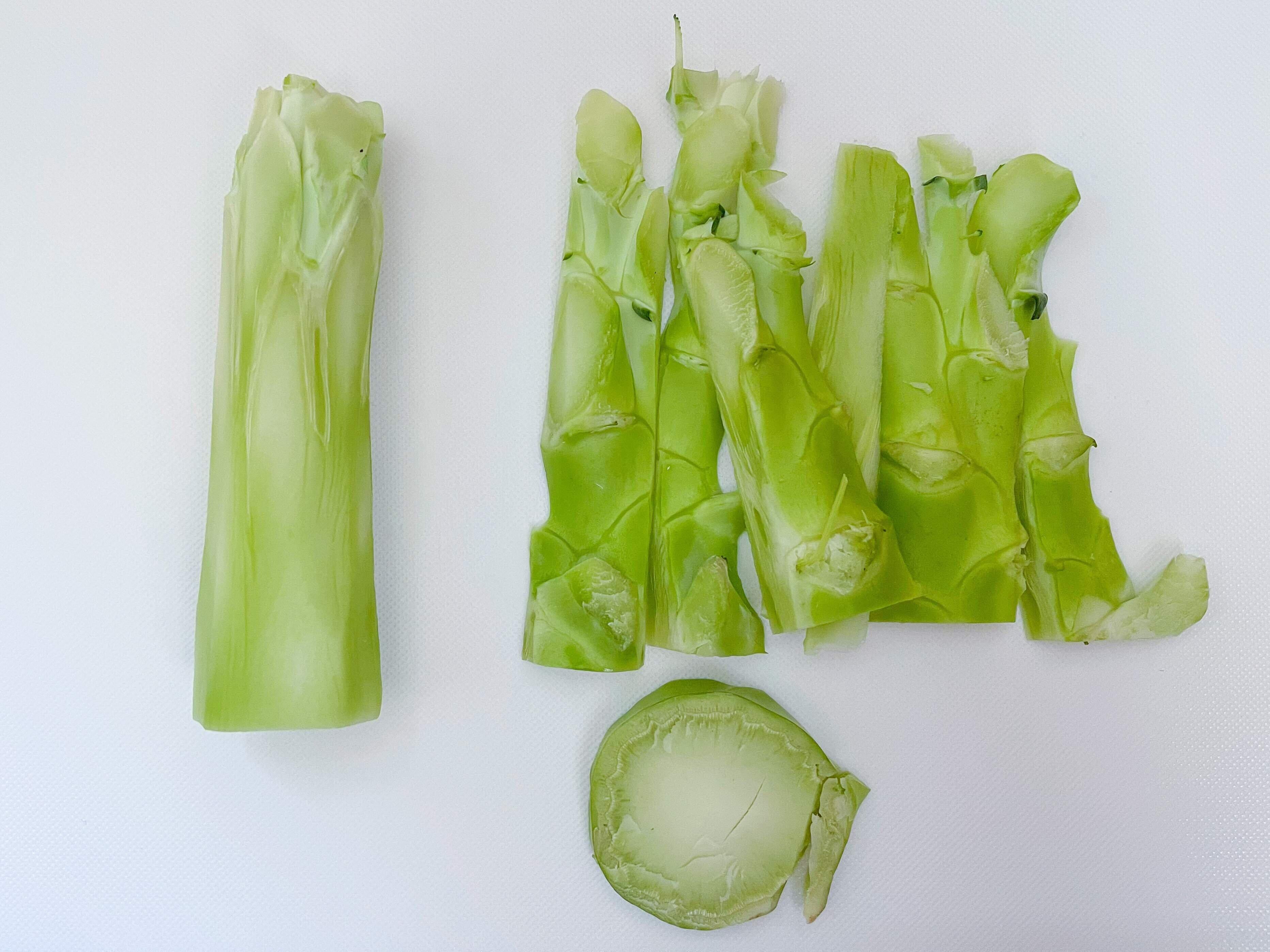 茎は皮がかたい部分もあるので、食べられないという印象が強いと思いますが、皮をむけばほんのり甘くとってもおいしいので、捨てずに食べるようにしてくださいね。