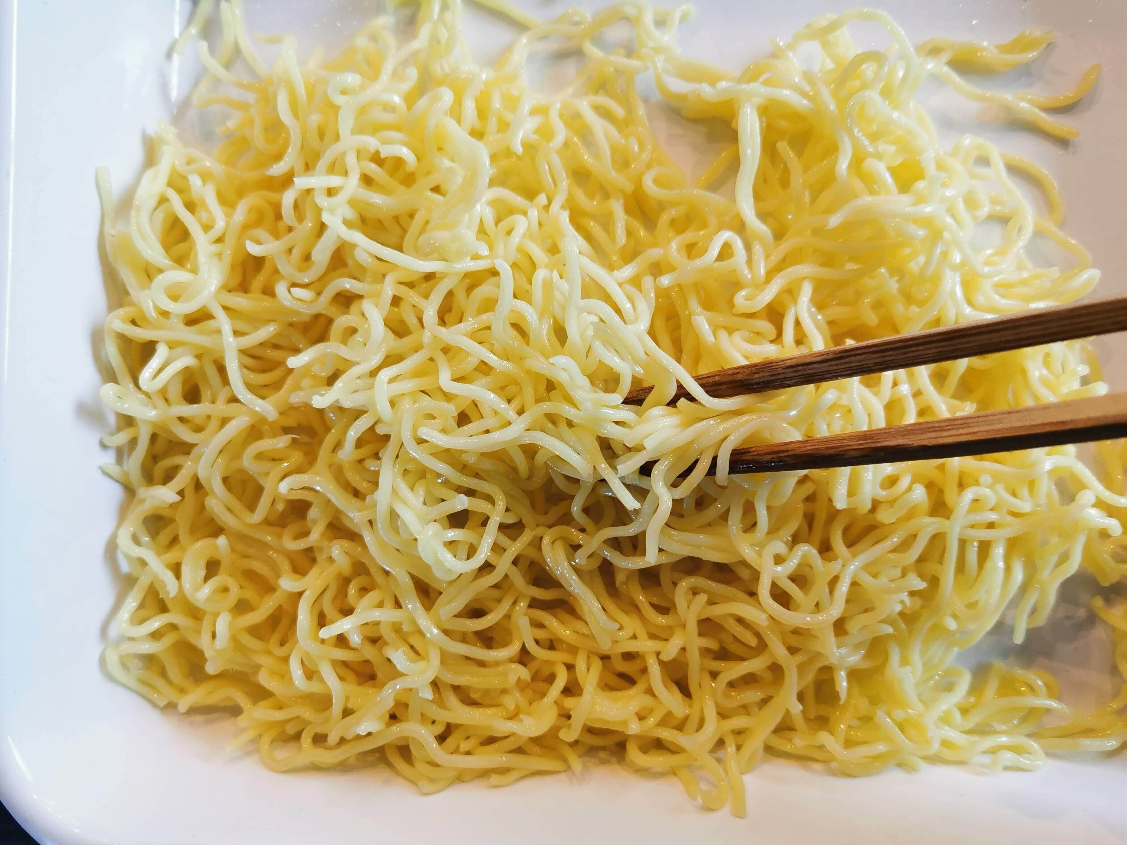 (3)香りがでてきたら焼きそば用の麺を入れ全体を混ぜる。