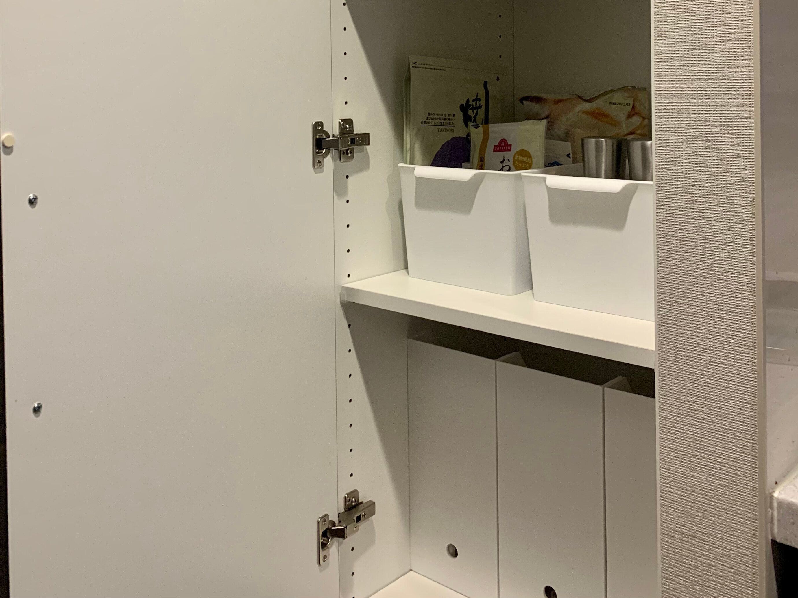 パントリーに食品のそのまま置くと、すぐにぐちゃぐちゃに。何をどこにしまったかわからなくなり、探す時間が発生してしまいます。セリアと無印のファイルボックスに収納するだけで使いやすくなり、見た目もすっきりしました。
