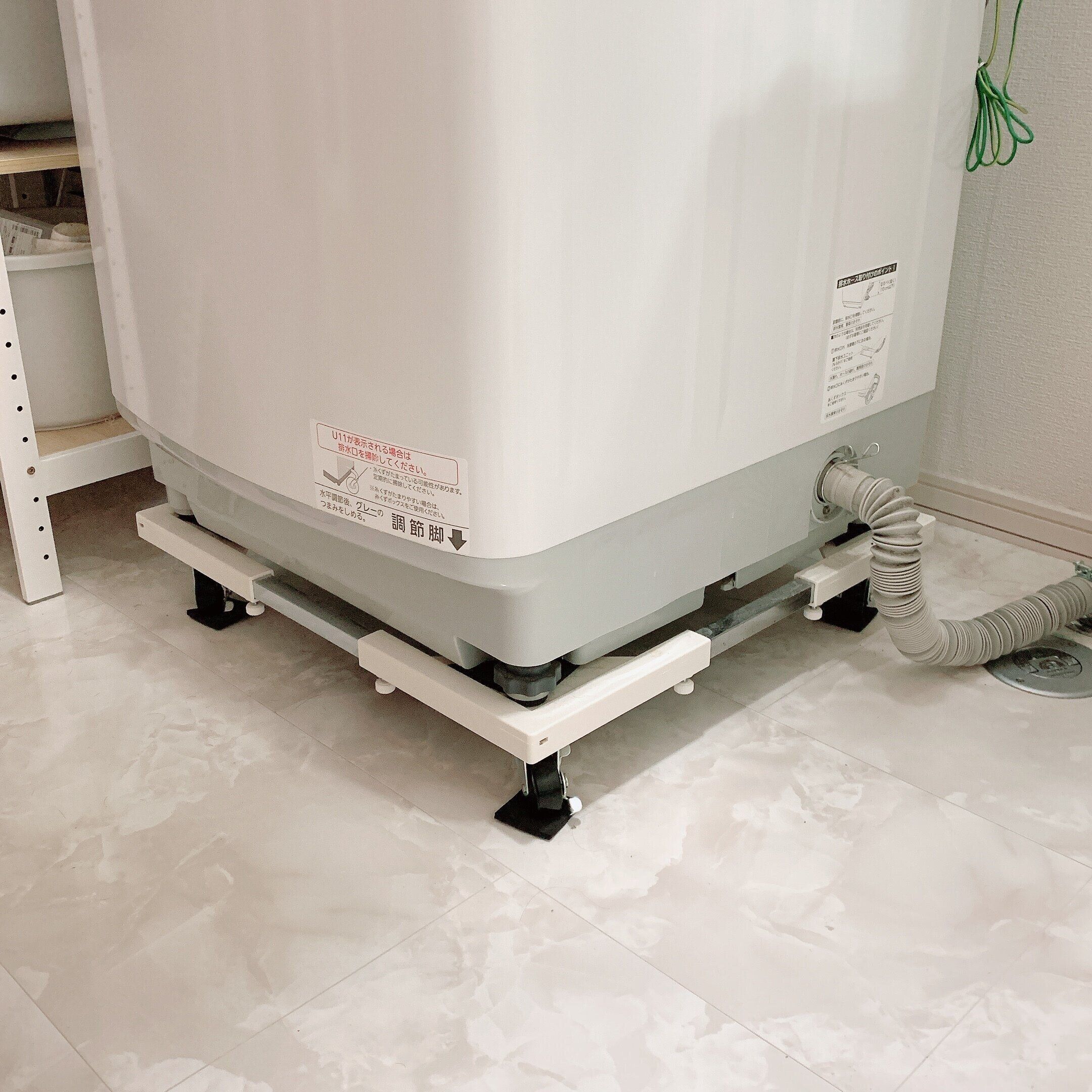 キャスターがついていて、重たい洗濯機もラクラク動かせちゃいます。