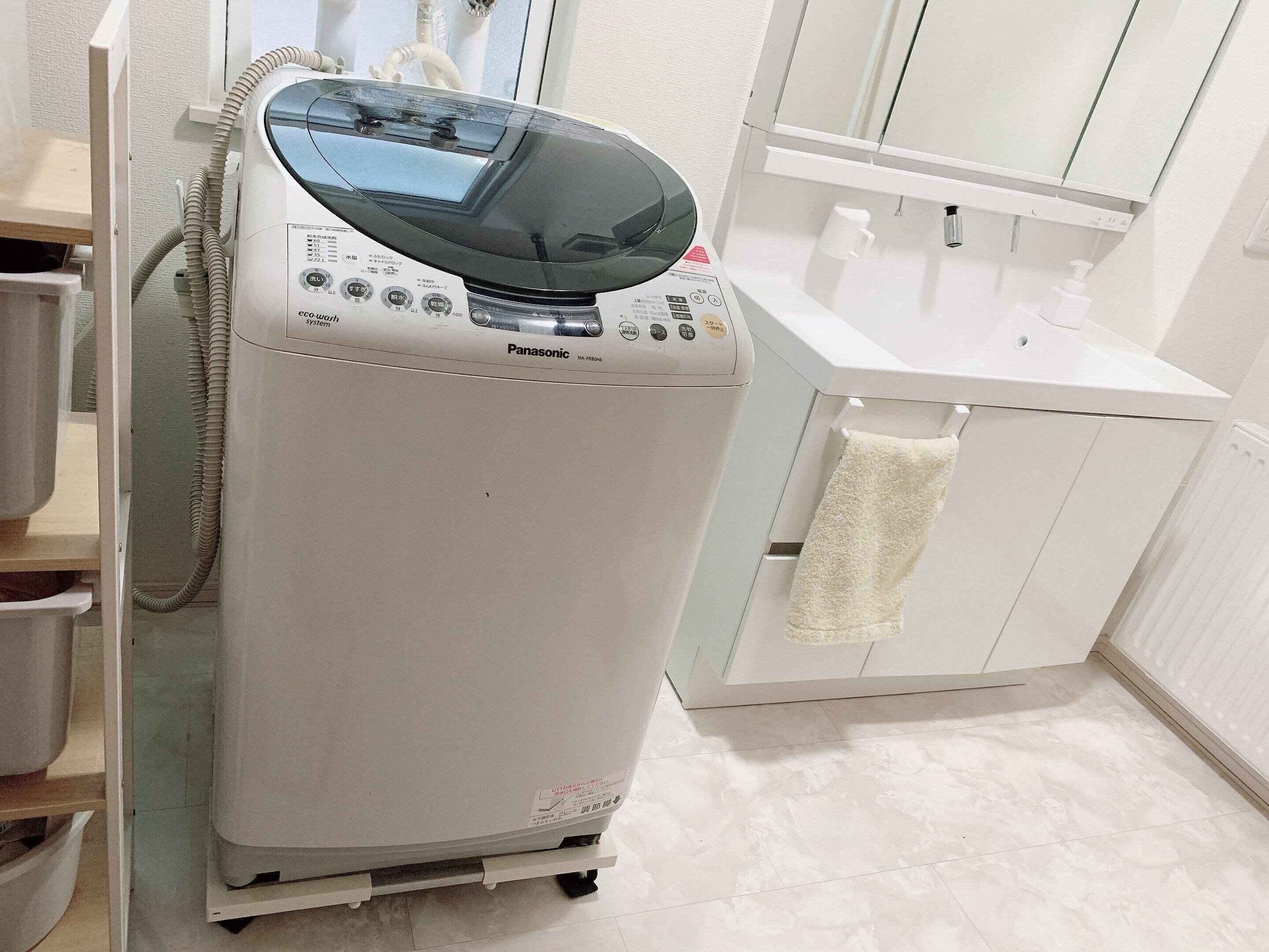 キャスターで簡単に動かせますが、洗濯機自体は重たく大きいものですので、動かす際は怪我をしないように気をつけてくださいね。