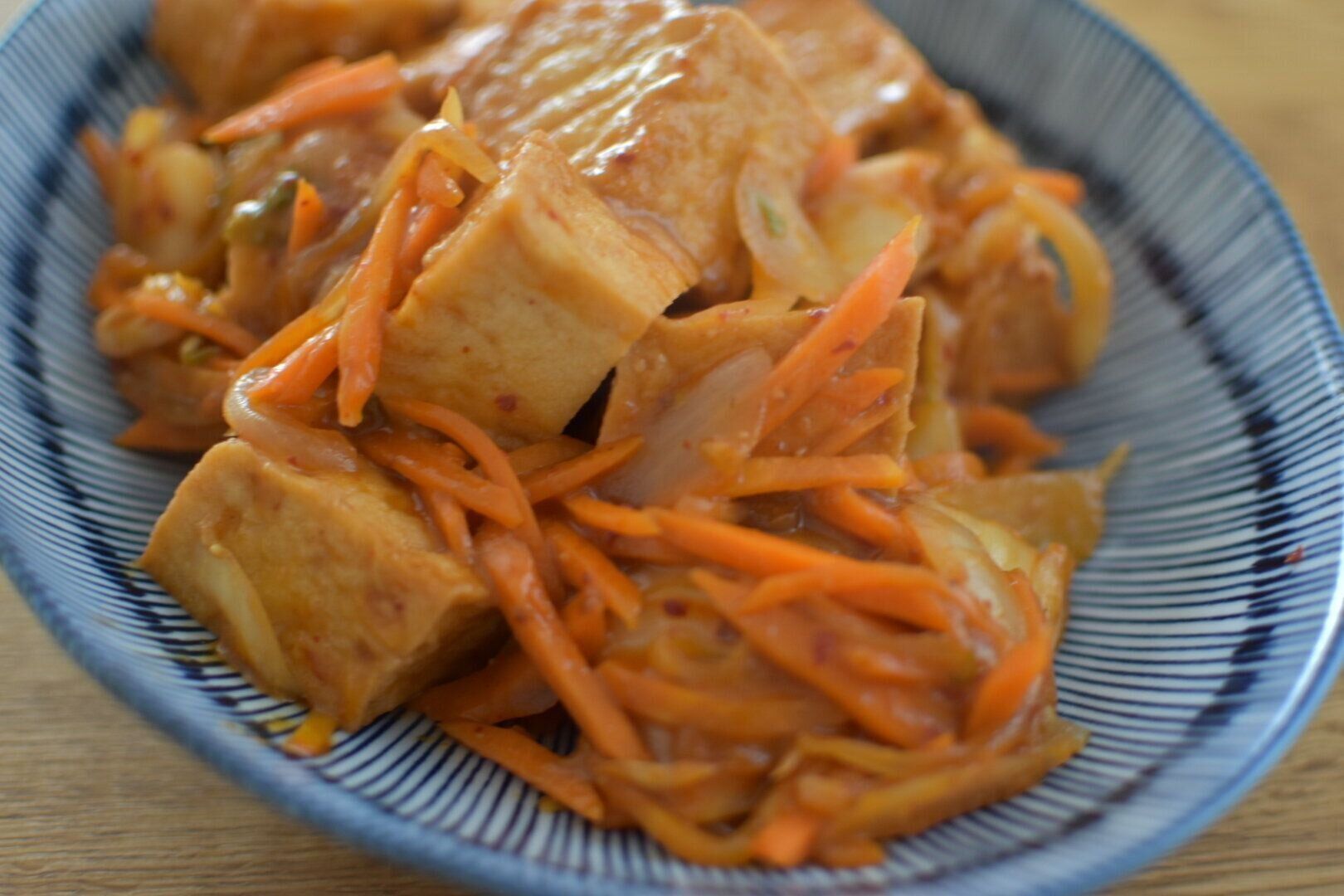 挽き肉だけでは物足りない野菜炒めも厚揚げを追加するとメインにもなります。