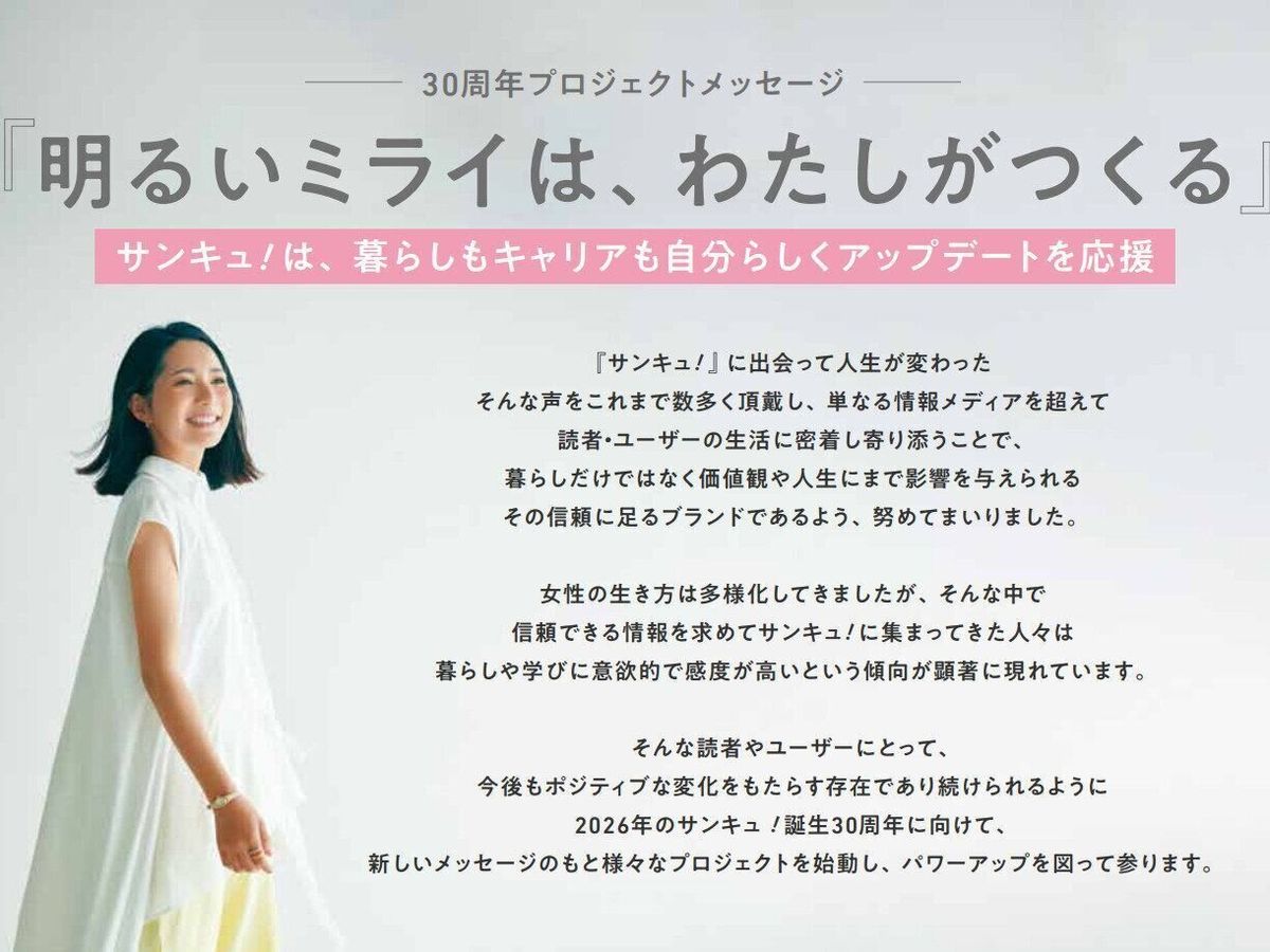 生活情報誌「サンキュ!」は、まもなく創刊30周年を迎えるにあたり、読者層の多様化、ライフスタイルの変化に即したブランド展開にむけて、WEBニュース、SNS、動画やイベントを強化するなどしていきます。それにともない、雑誌の刊行形態を変更し、リニューアルをいたします。より良い商品づくりのため、編集部一同精進してまいりますので、どうぞよろしくお願い致します。