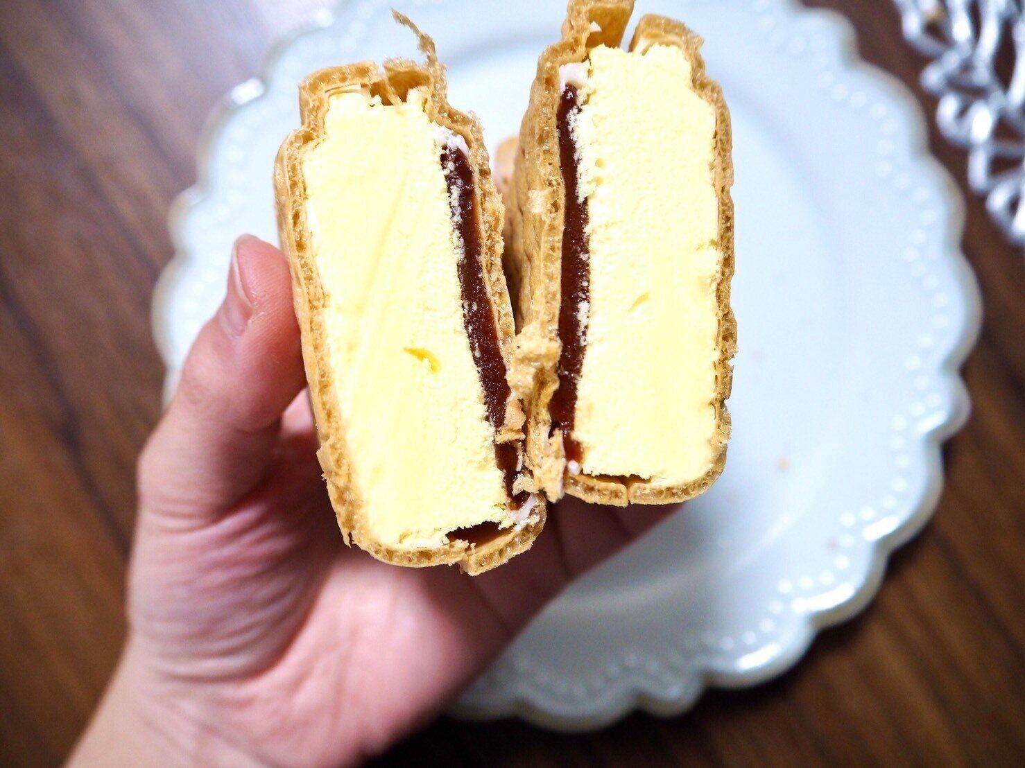 最中とアイスの隙間にホワイトチョコ?が仕込まれているようで、甘いアイスをさらに甘く感じます。