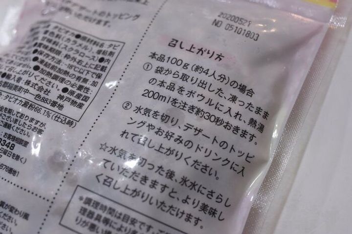 海外食材を扱うお店で売られているタピオカは乾燥のものが多く、水につけて置いたあとにゆでる必要がありますが、業務スーパーの「インスタントタピオカ」は熱湯につけるだけでOK。しかもわずか30秒なので、すぐに食べられます。