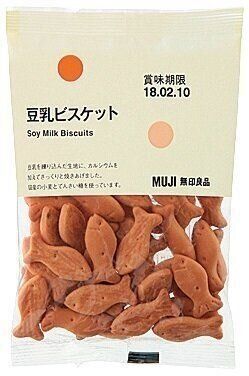 豆乳を練り込んだ生地に、カルシウムを加えてさっくりと焼き上げた魚形のビスケット。(70g、¥92)