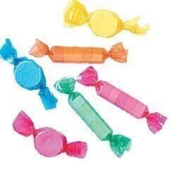 いちごやぶどうなどの5種類の果汁を使用。大小さまざまなサイズ&セロハンの色が楽しい。(68g、¥92)