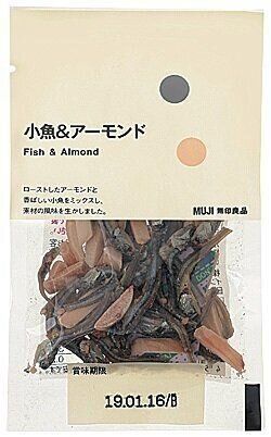 ローストしたアーモンドと香ばしい小魚をミックス。素材の味を生かしてシンプルに仕上げ。(14g、¥92)