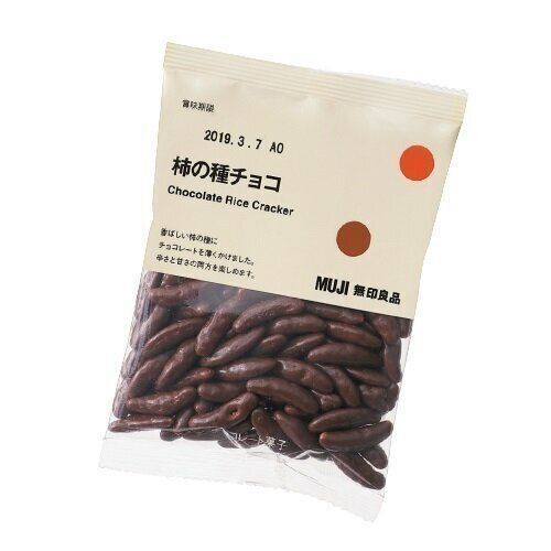 香ばしく焼き上げた柿の種にチョコレートを薄がけ。食べ飽きないベーシックなおいしさ。(55g、¥92)