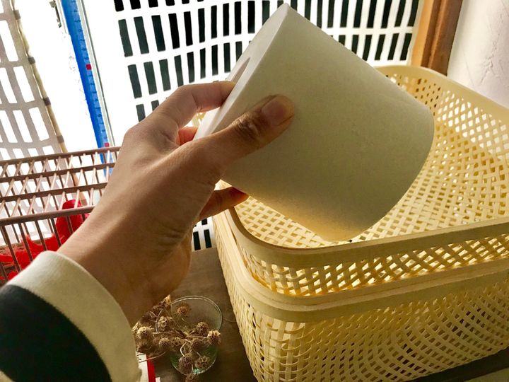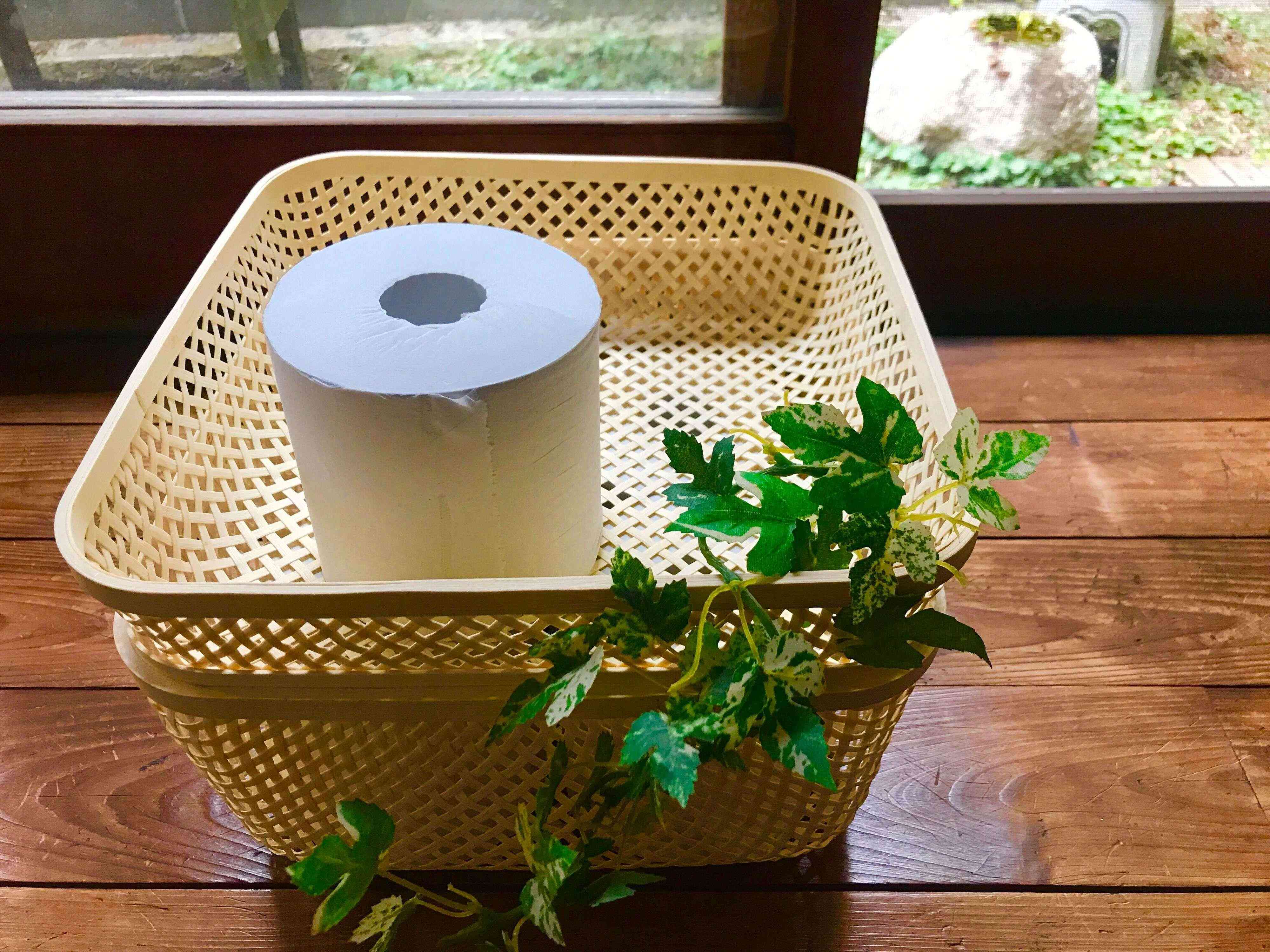 このスマッラをトイレットペーパー収納に使えば、「生活感のある在庫を隠す」収納ができるうえに「つぎに使う1〜2個をインテリアの一部として見せる」収納ができるんです!