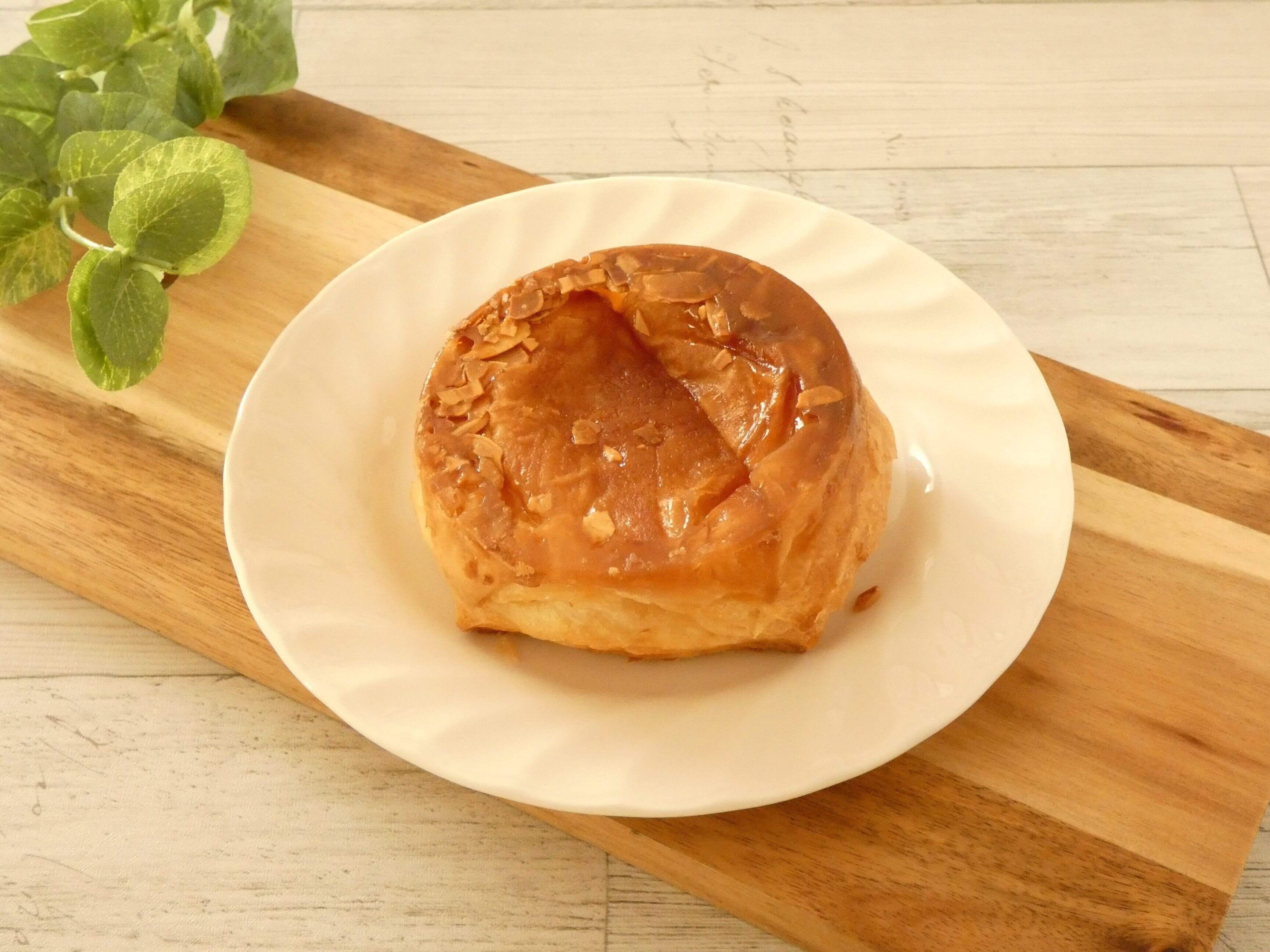 デニッシュ生地にはスライスアーモンドが乗った薄い飴がトッピングされていて、中にはとろーりなめらかなカスタードがたっぷり入っています。