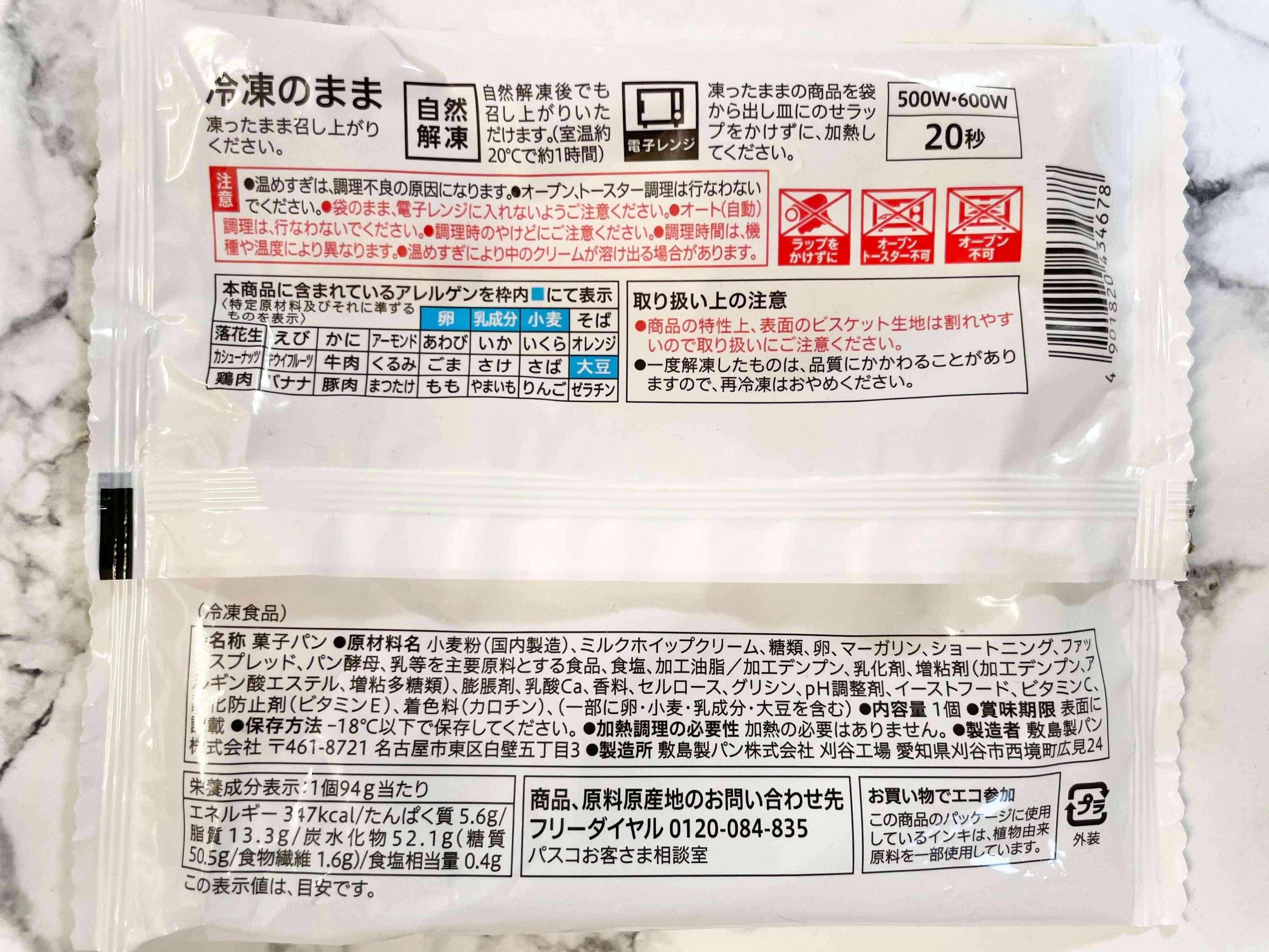 解凍方法が簡潔にちゃんと載っていて親切ですね。1個あたり347Kcalなんですが、思っていたよりは低い印象!ホイップが入ったメロンパンってどれも400Kcal超えはありますからね……。