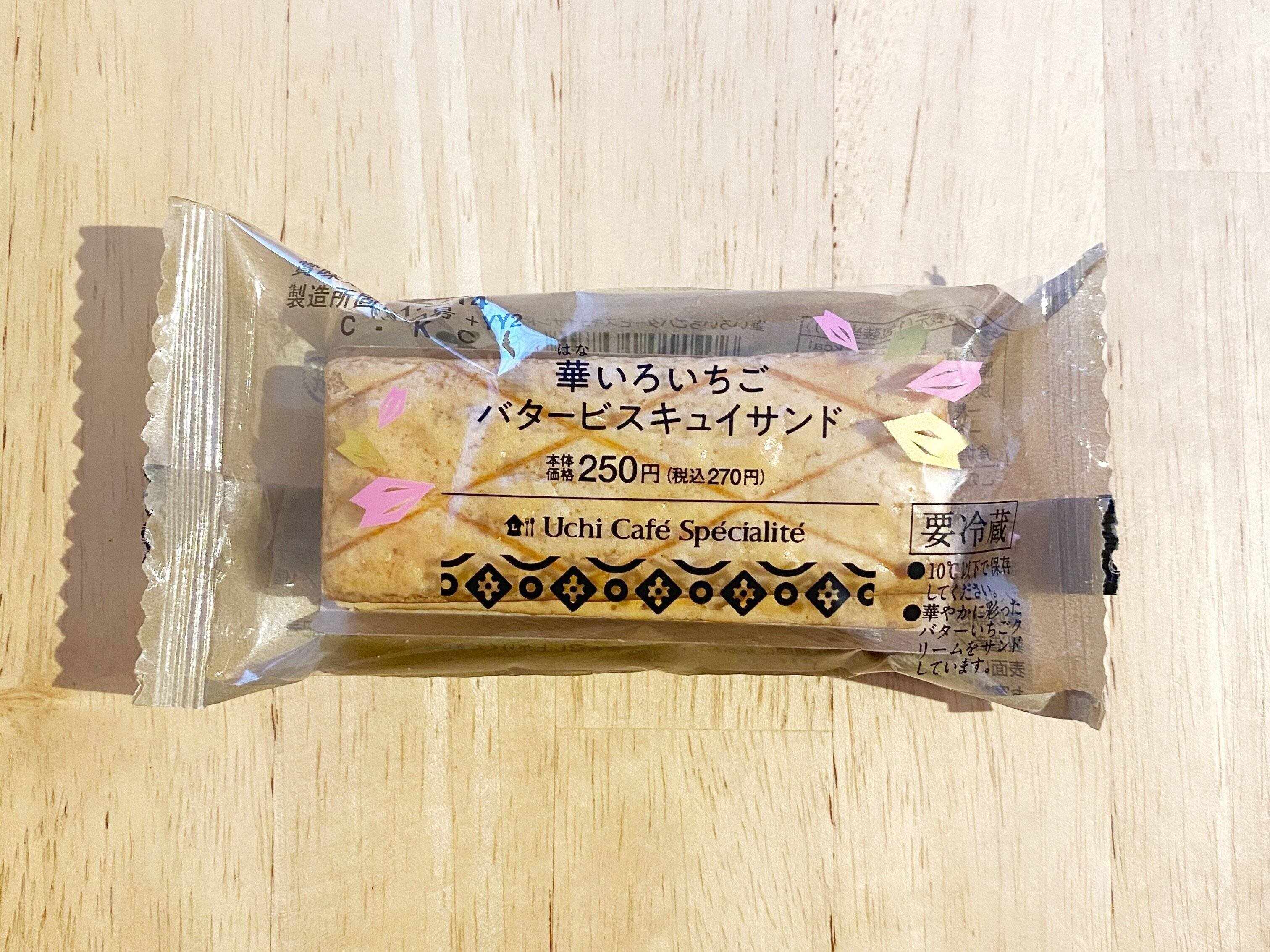 ローソンの“ウチカフェスペシャリテ”シリーズから新商品が3つ発売されたので、1番気になった【華いろいちごバタービスキュイサンド】を購入してきました。