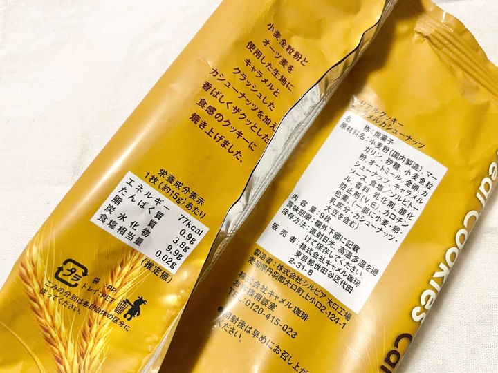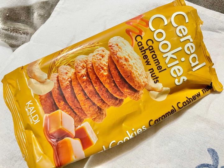 サイトをチェックしているとカルディオリジナルの「シリアルクッキー キャラメルカシューナッツ」がおいしいという情報を発見。早速買いに行くとラスト2個!ギリギリセーフで買えました。