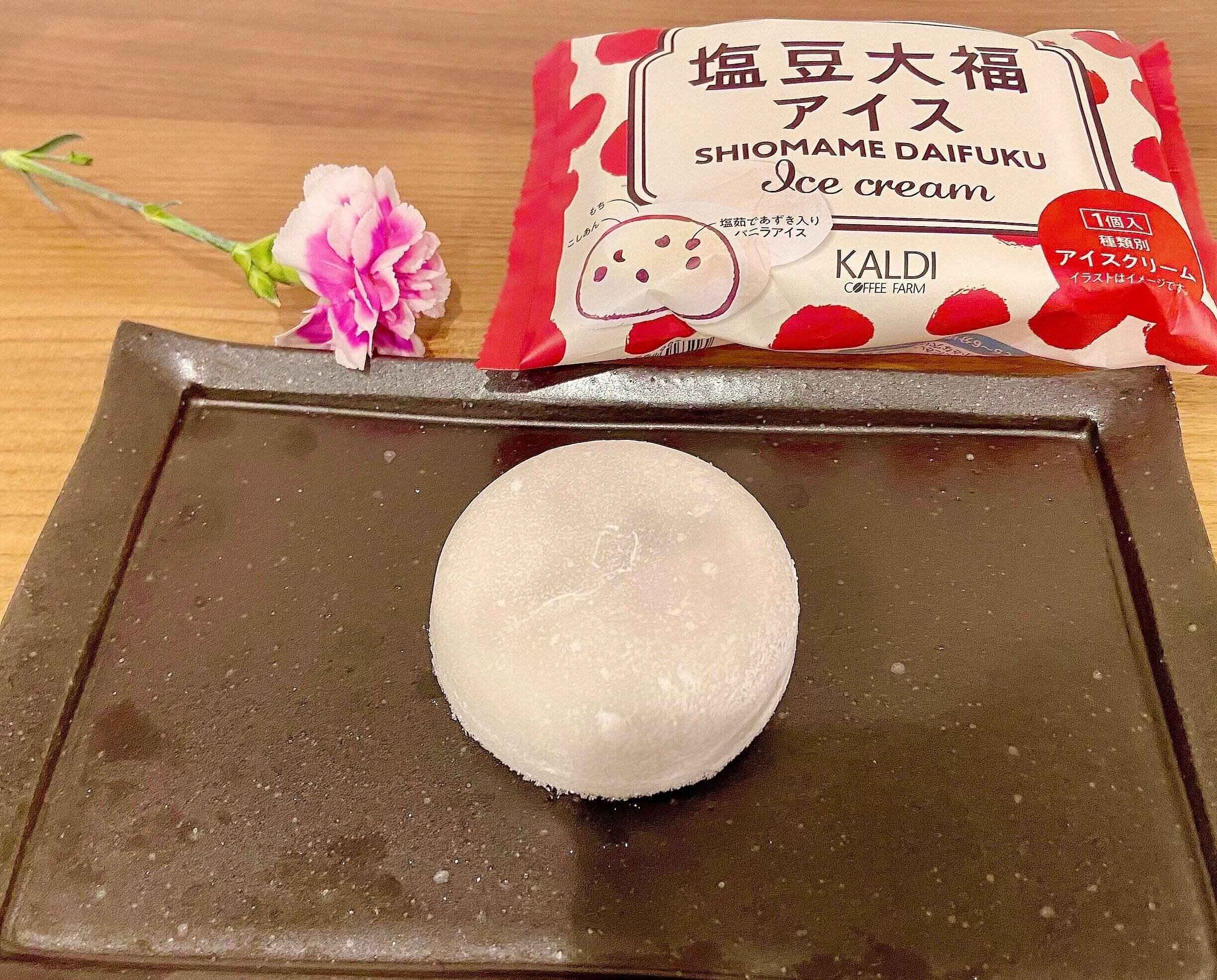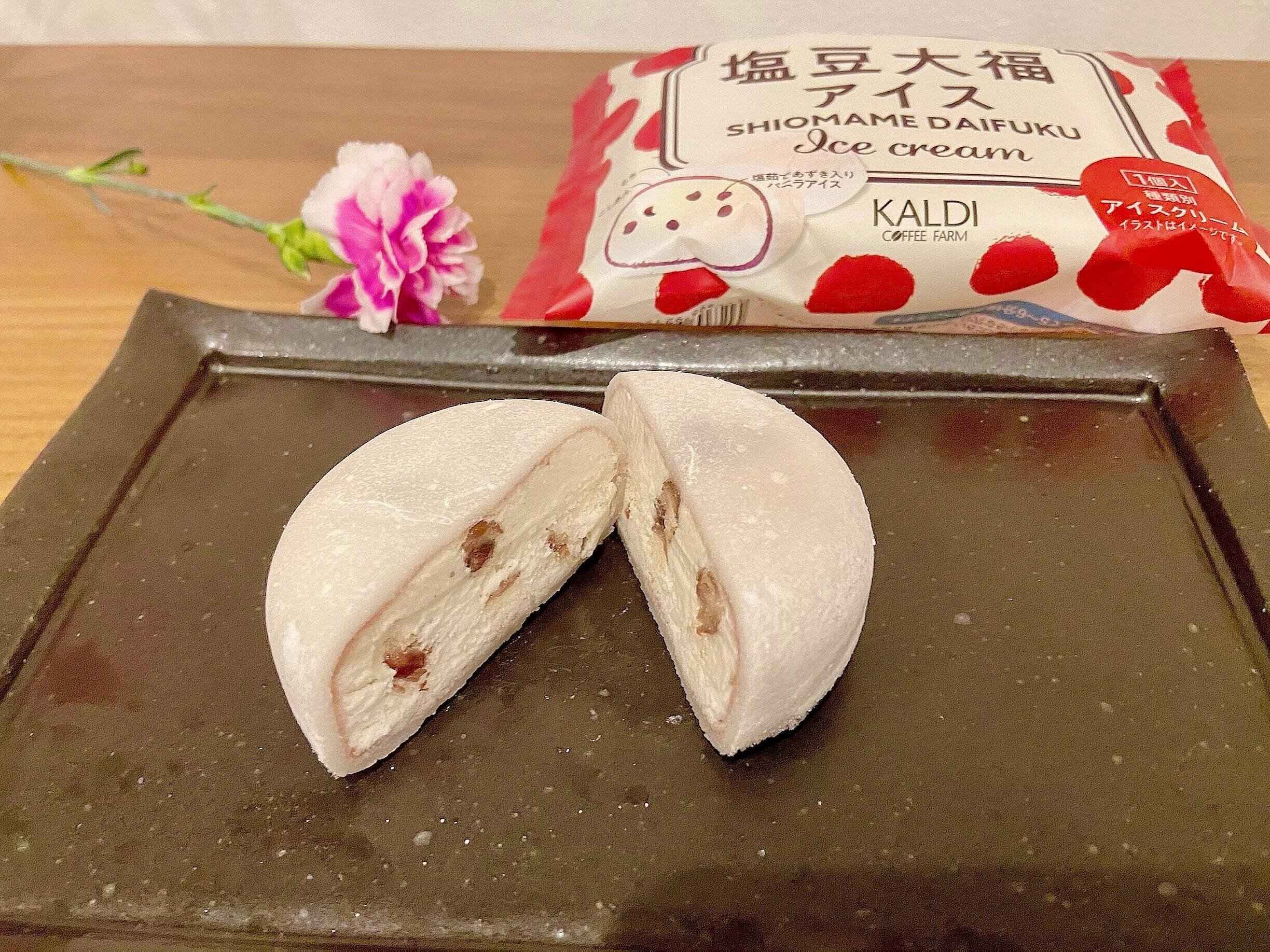 輸入品やおいしいスイーツ、コーヒー、ワインなどを販売しているカルディコーヒーファーム。店頭で「塩豆大福アイス」を発見。とても美味しく、最強のおもち系アイスで、幸せになる味でした!