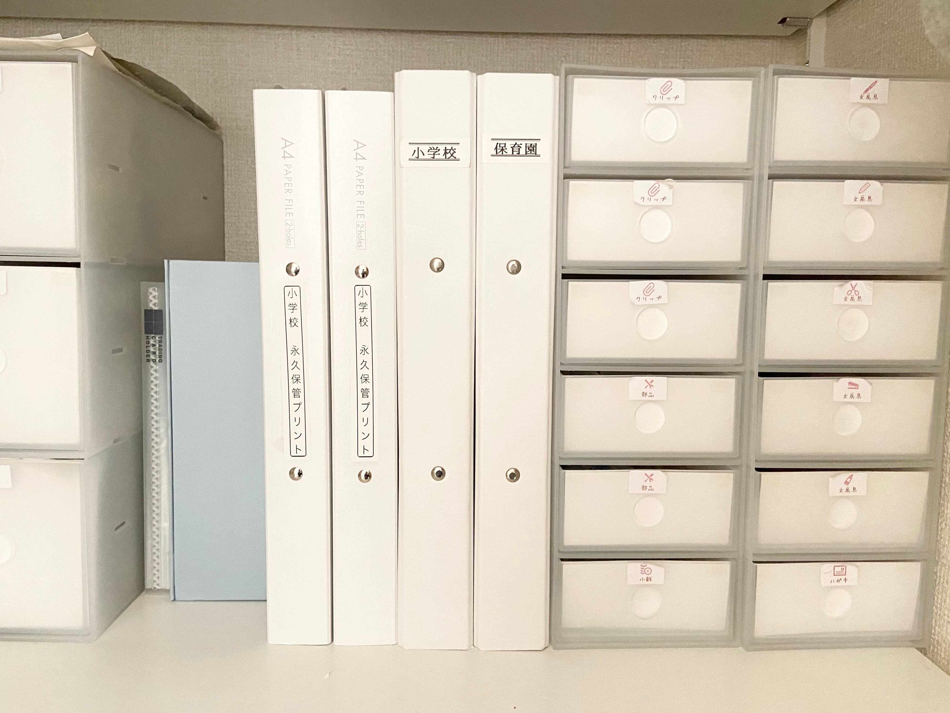 小学校のプリント類は枚数も多く小分類も多いので、穴あけタイプのファイル管理が、古くて不要になったプリントも抜き出しやすく必要なプリントも探しやすいのでオススメです。