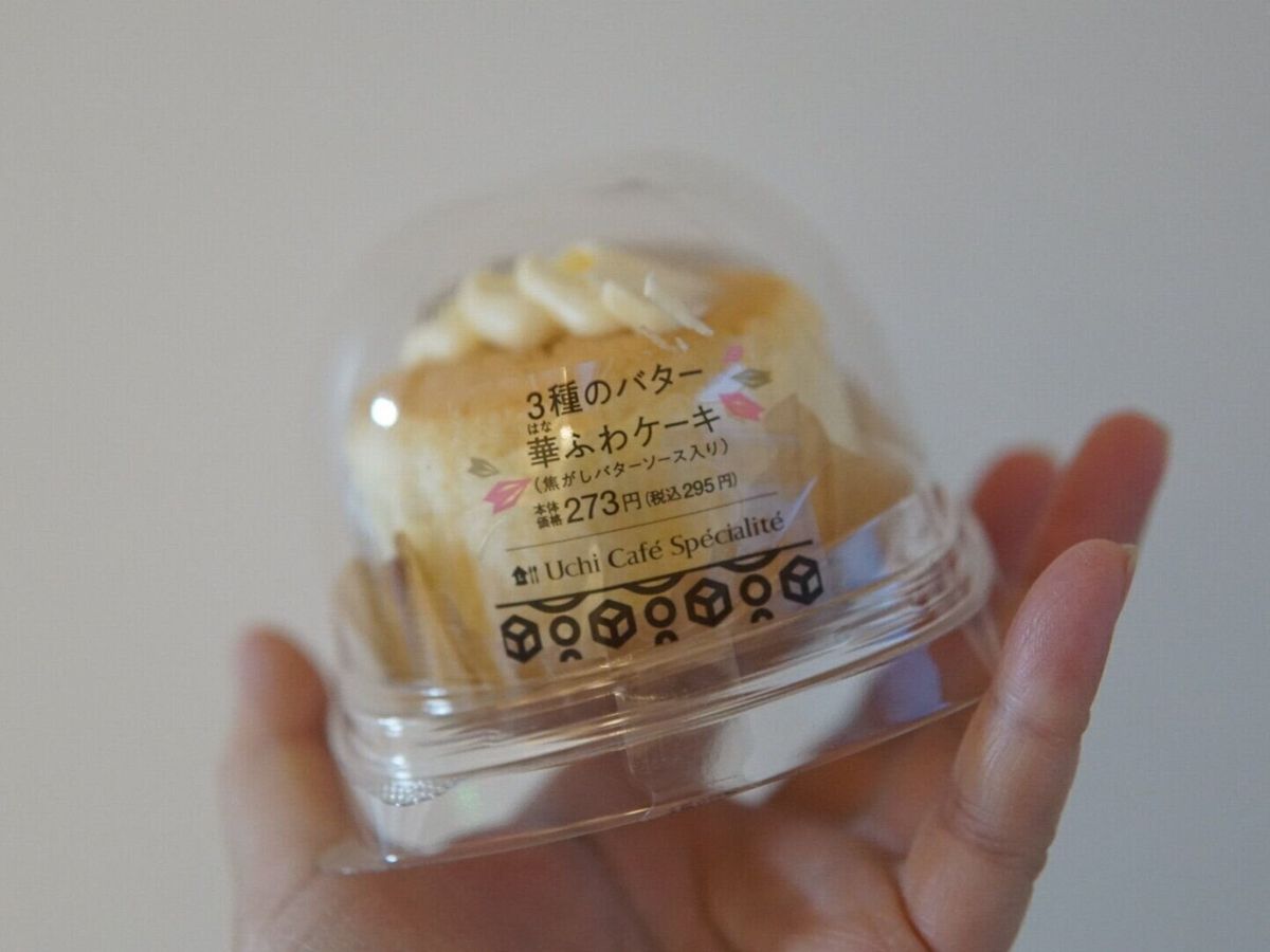春のUchi Café Spécialitéシリーズの1つとして販売されたのが、こちらの「3種のバター華ふわケーキ(焦がしバターソース入り)」です。まずは基本情報から。
