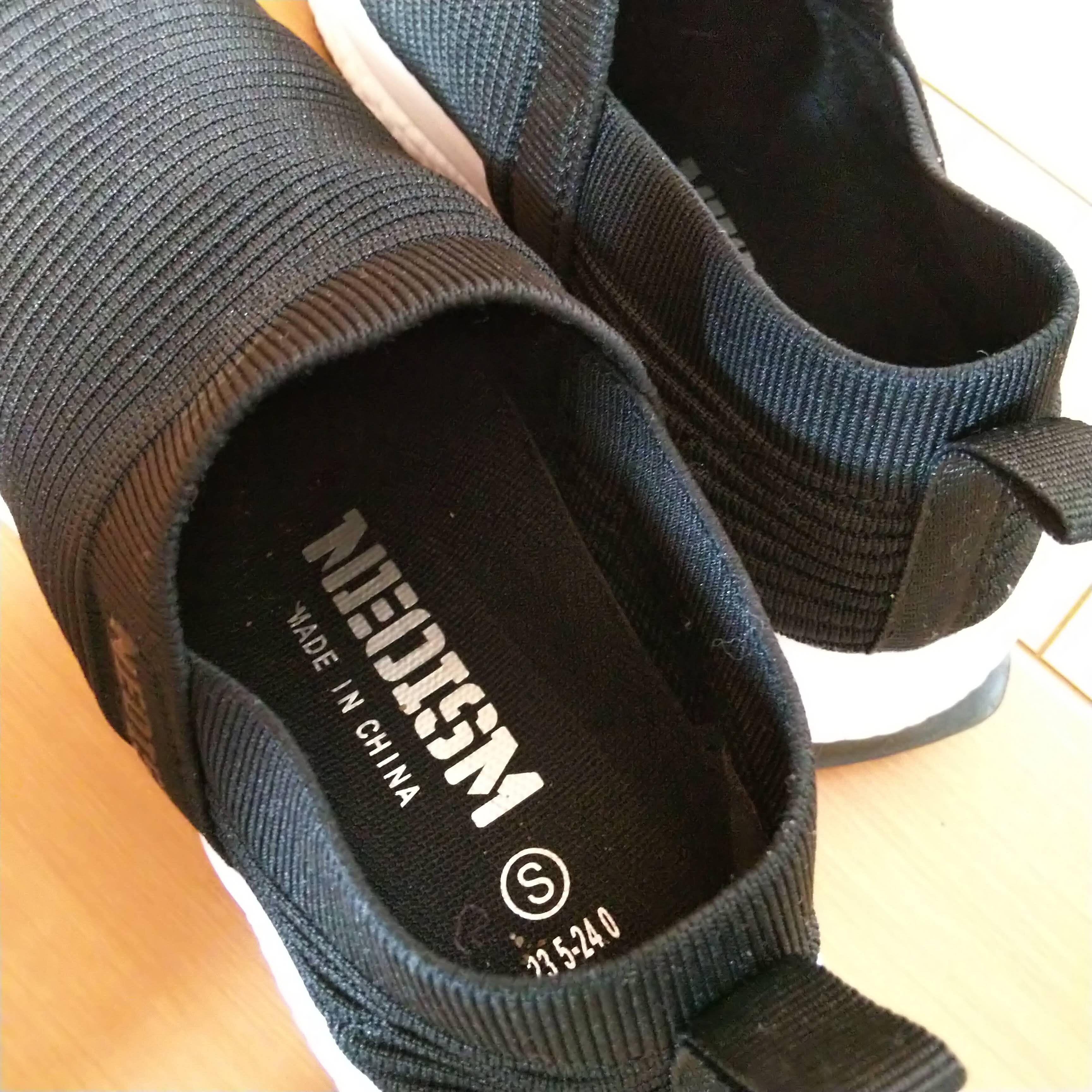 店舗では販売されていますが、どこも品薄状態で、筆者自身3軒まわってようやく購入できました。購入したのはSサイズで23.5〜24センチと明記してありました。