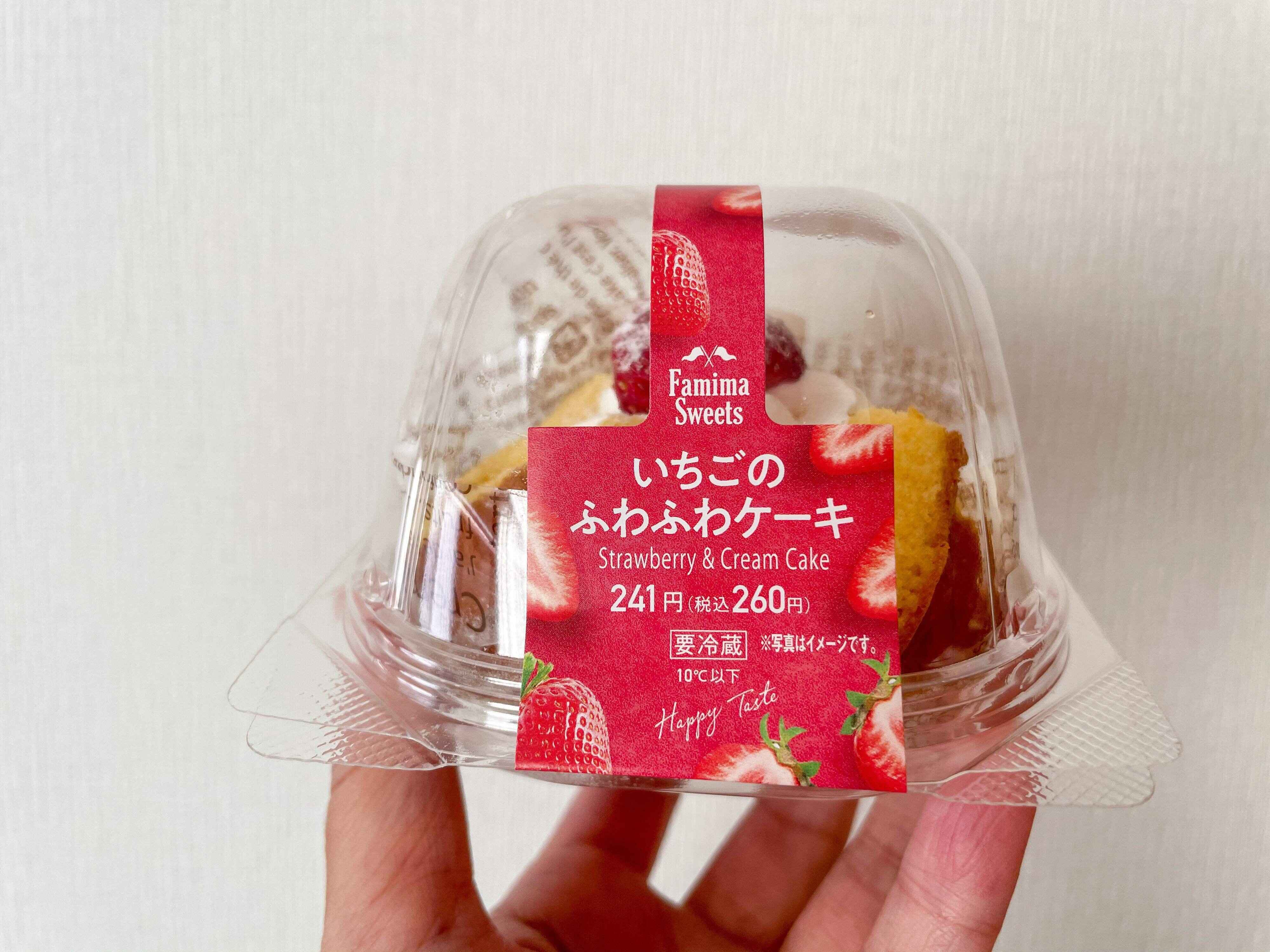 今回手に取ったのは、ファミリーマートの「いちごのふわふわケーキ」税込260円です。