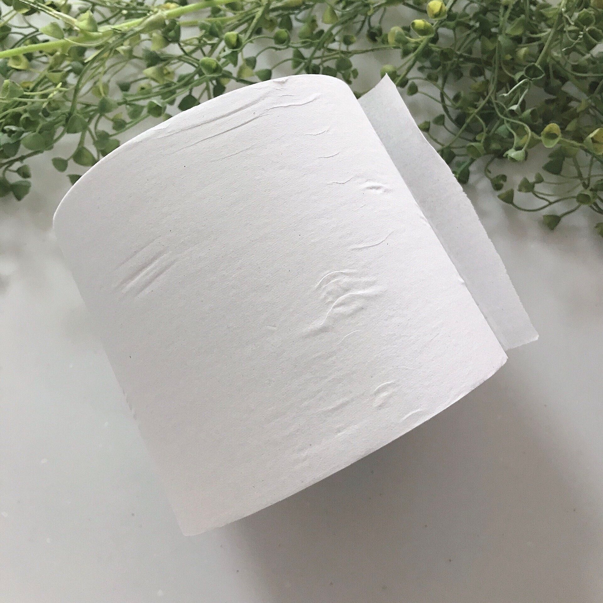 好みがあるかもしれませんが、ミシン目がないのでスパッと切れやすいところが気に入りました。ミシン目があるものを中途半端なところでカットしてしまうと、ちぎれたトイレットペーパーの破片が床に落ちてしまうことがあります。でもこのトイレットペーパーはそんな心配がほぼありません。