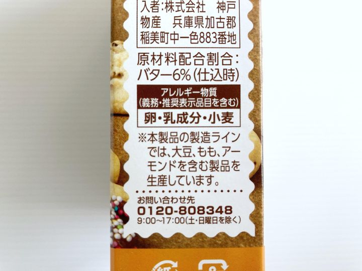 製造ラインでは、大豆、もも、アーモンドを含む製品を生産しているので、アレルギーのかたはご注意ください。