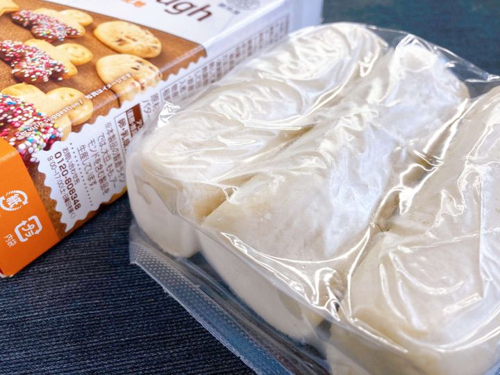 中身を開けてみると、冷凍のクッキー生地が丸い円筒状で3本入っていました。