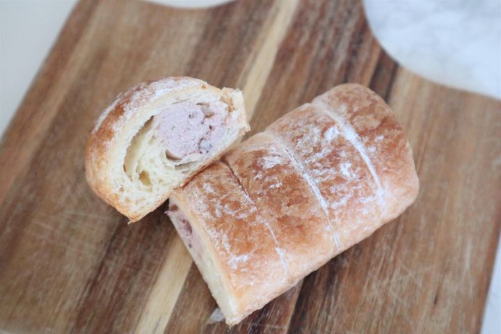 濃厚なつぶあん入りのホイップがたっぷり。デニッシュ生地は、層になっています。