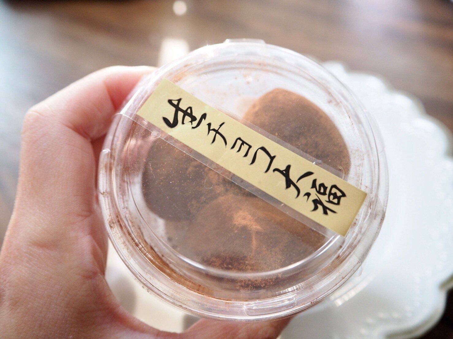 もちもちの大福の中にとろとろのミルクチョコが入っており、さらにココアパウダーがかかっています。