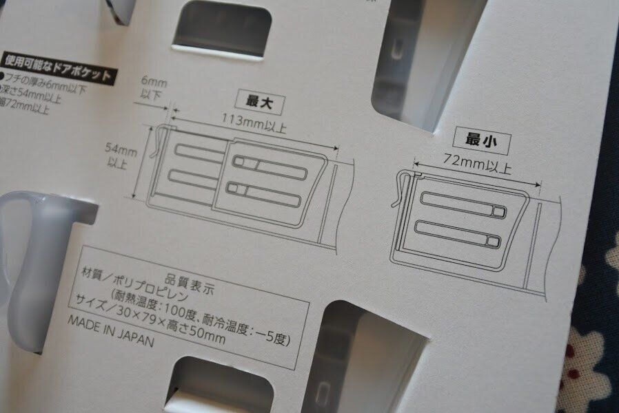 ドアポケットを仕切ることができる、セリアの伸縮できないタイプのものをずっと愛用していました。これを初めて取り付けた時、すごい!!と大満足でした。ただ使い続けていくうちにドアポケットの収納に余裕がある時は問題がないけど、ギュウギュウに収納するものがある時は奥に収納したものが倒れてしまって仕切りがもう少し長ければ〜と思っていたんです。