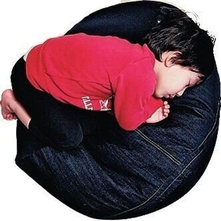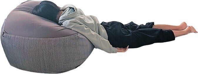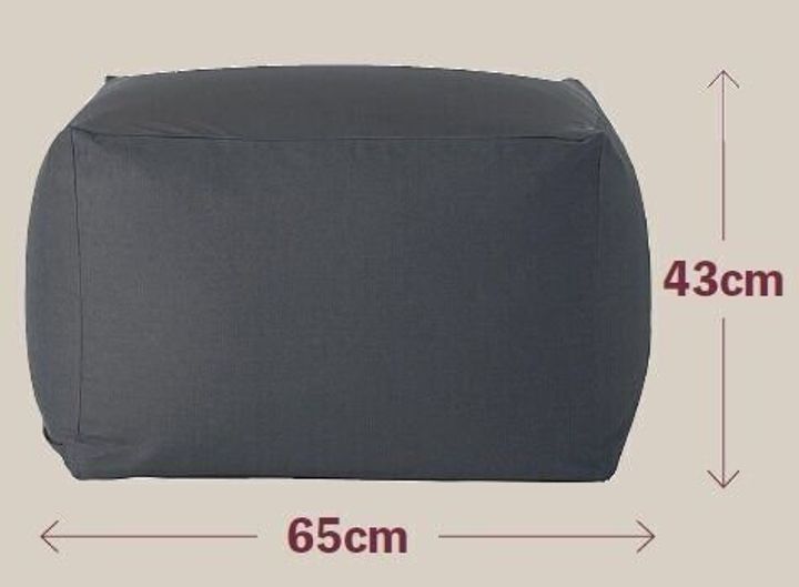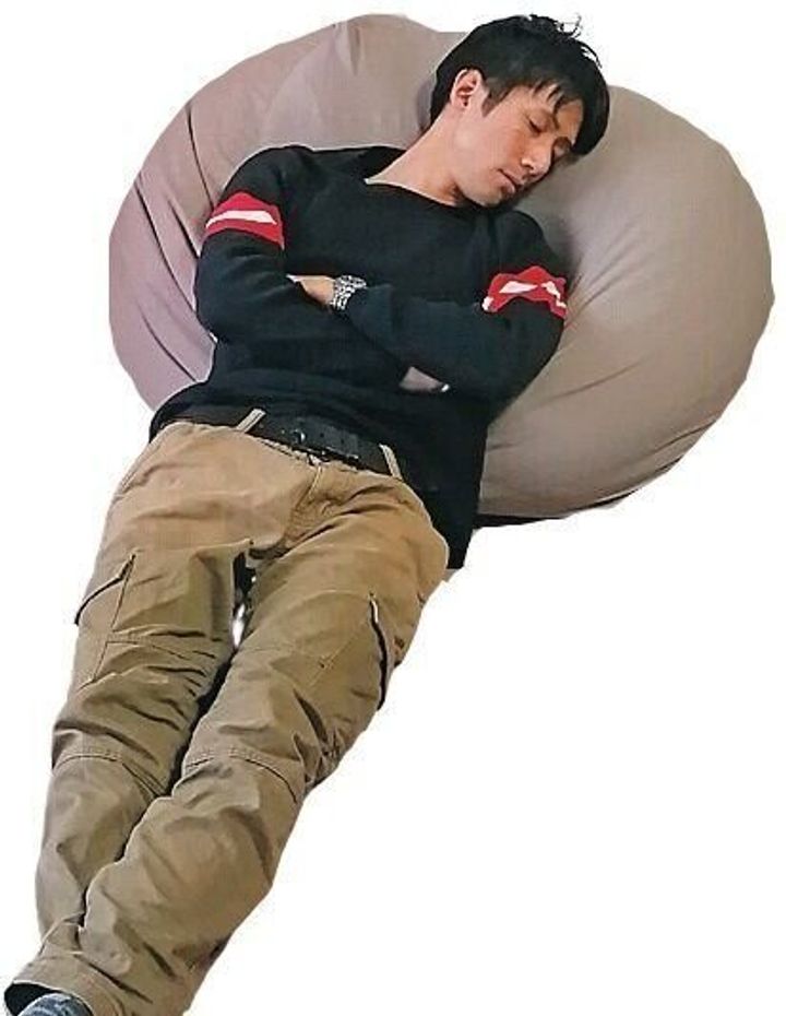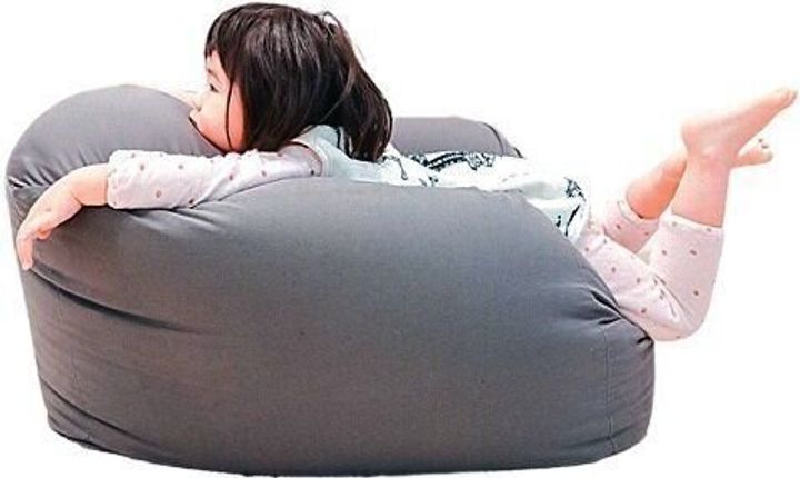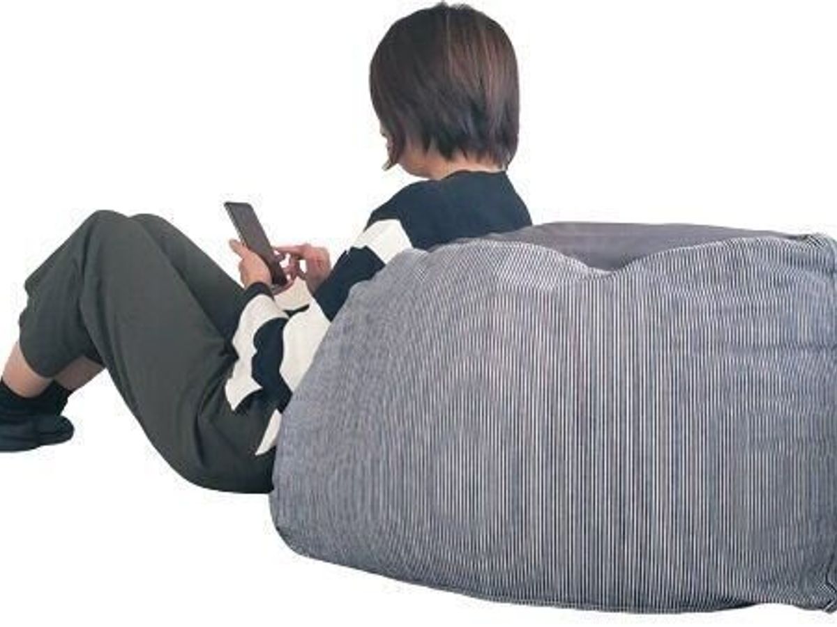 中身はビーズ。カバーの上下面と側面(4面)の素材が違うため、置き方によって座り心地を変えられる。「体にフィットするソファ・本体」(65×65×43cm)¥9,082、「体にフィットするソファ用帆布カバー」(ブラウン)¥2,719