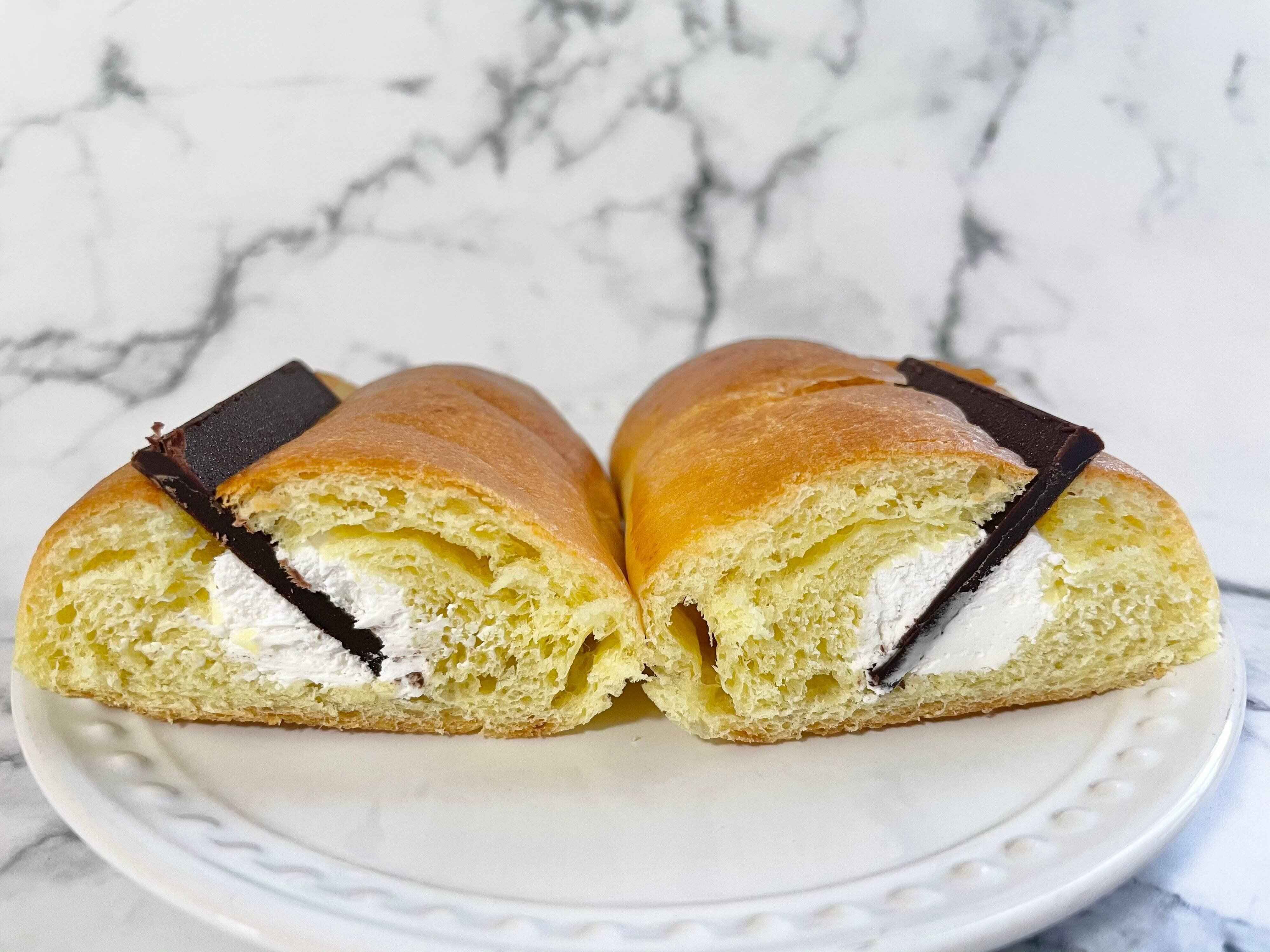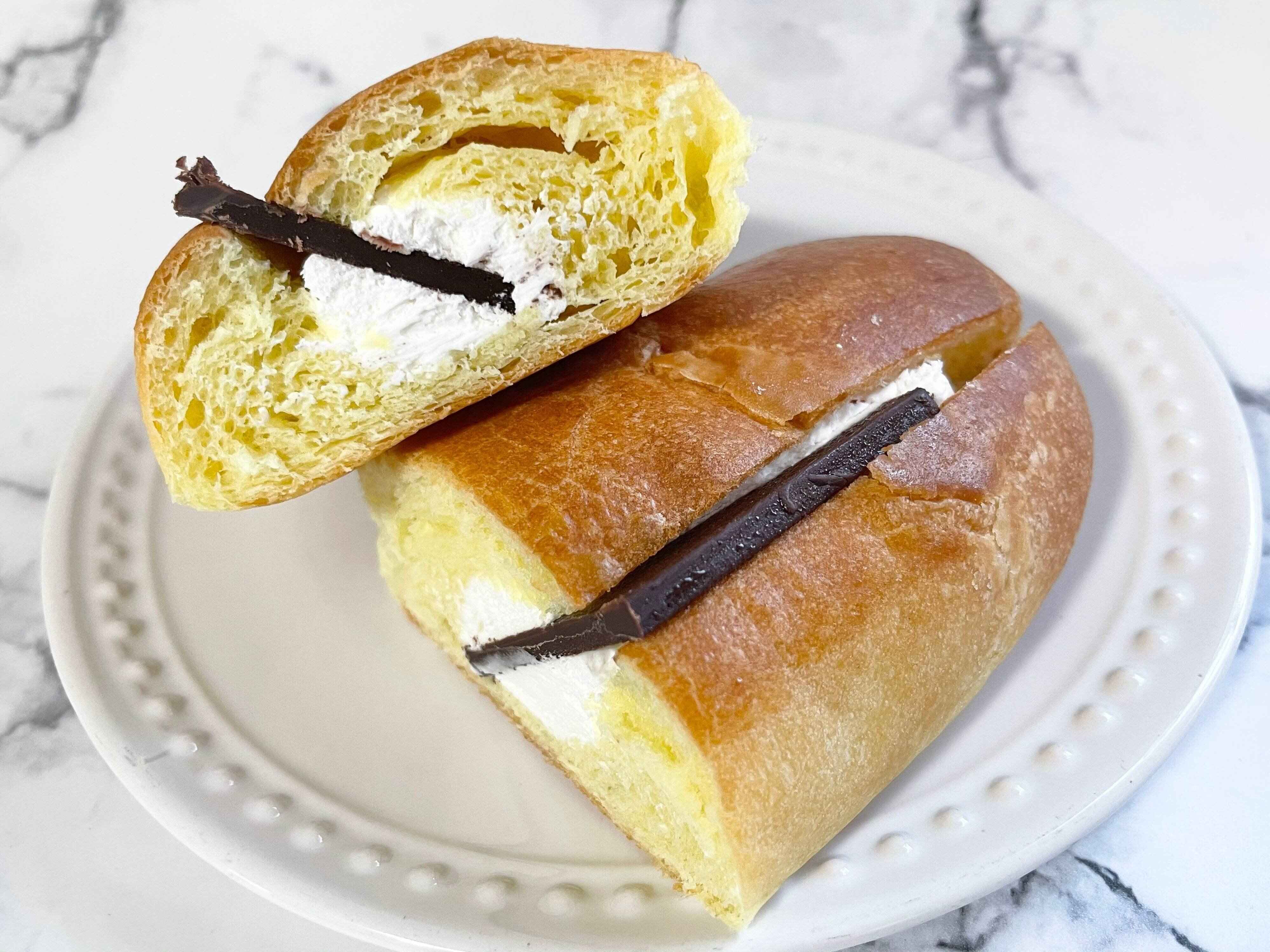 薄く食感のいい板チョコとホイップクリームをくちどけの良さが特徴のブリオッシュ生地に挟んでいるそうです。