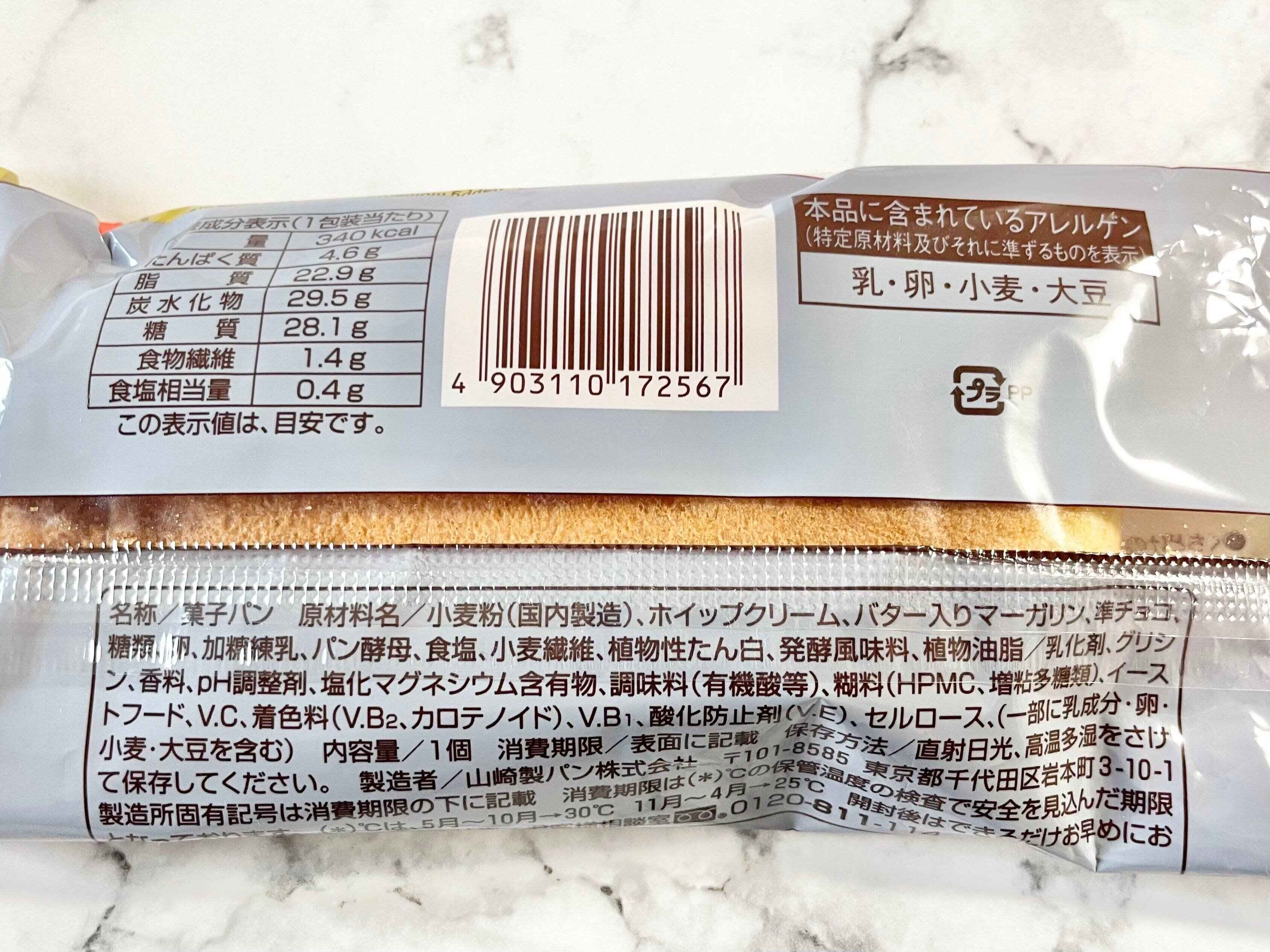 原材料と栄養成分表示はこちら。1個あたり340kcal。