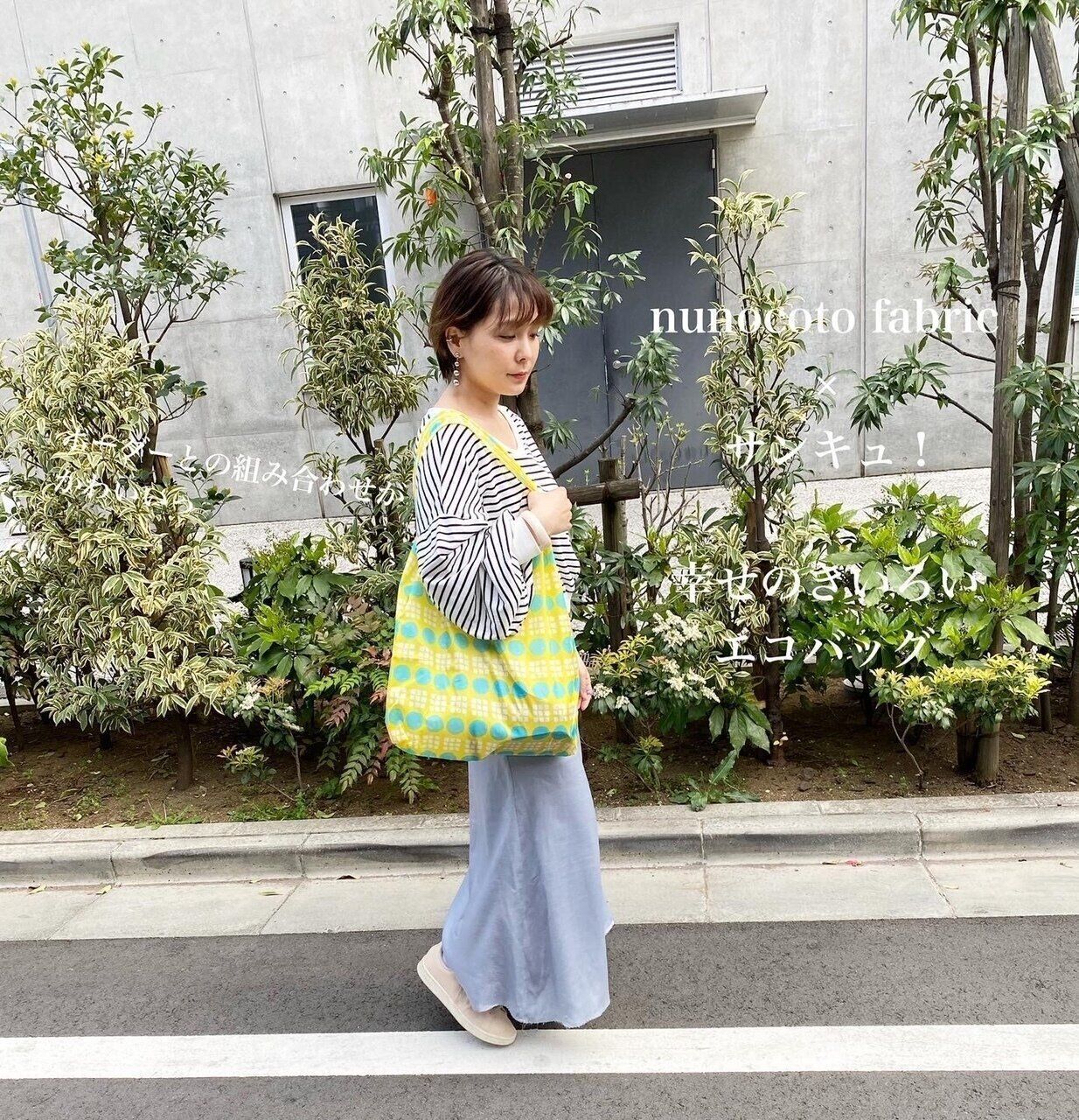 nunocoto fabricとサンキュ!のコラボ“運気アップ幸せの黄色いエコバッグ”です。