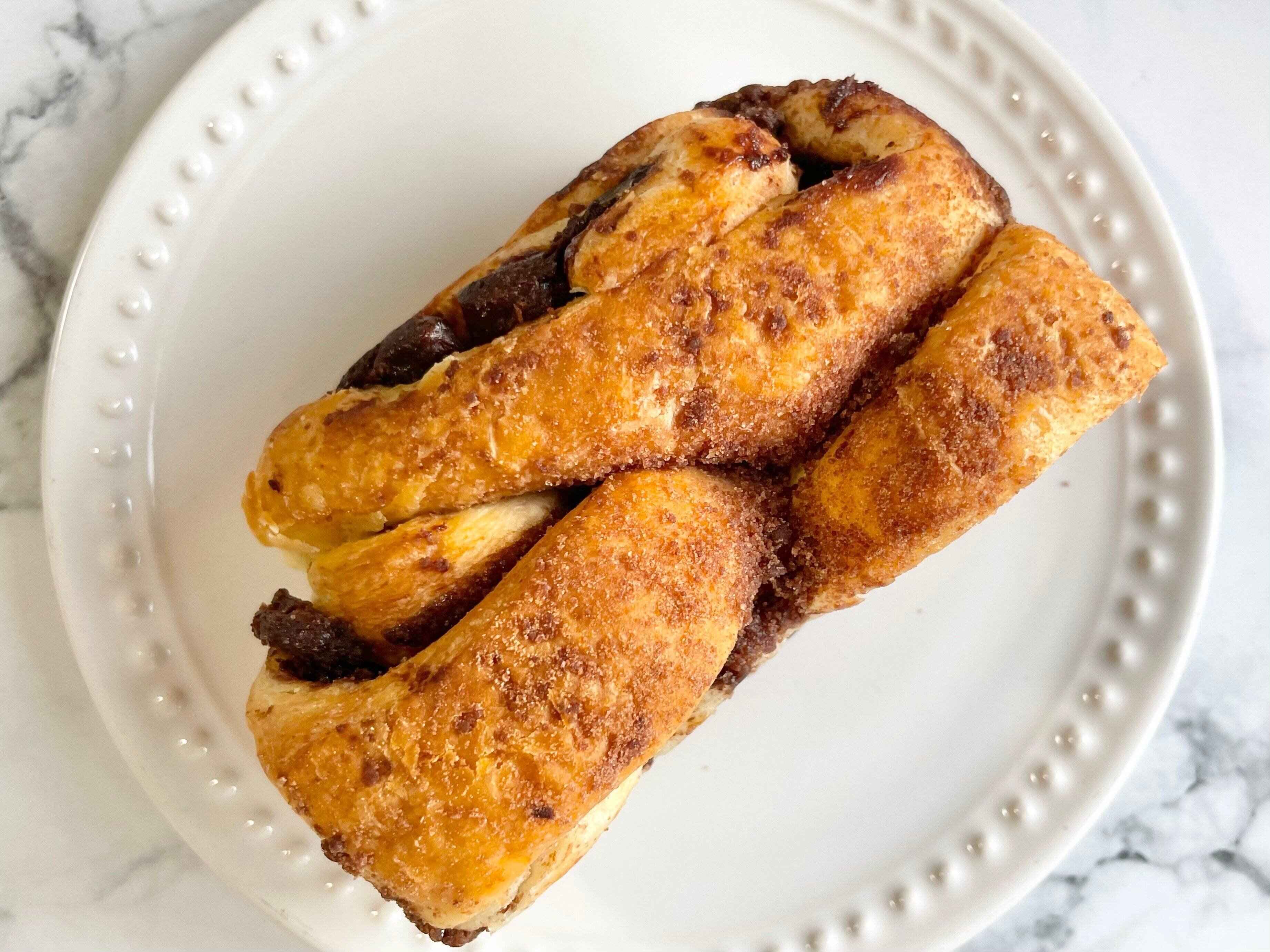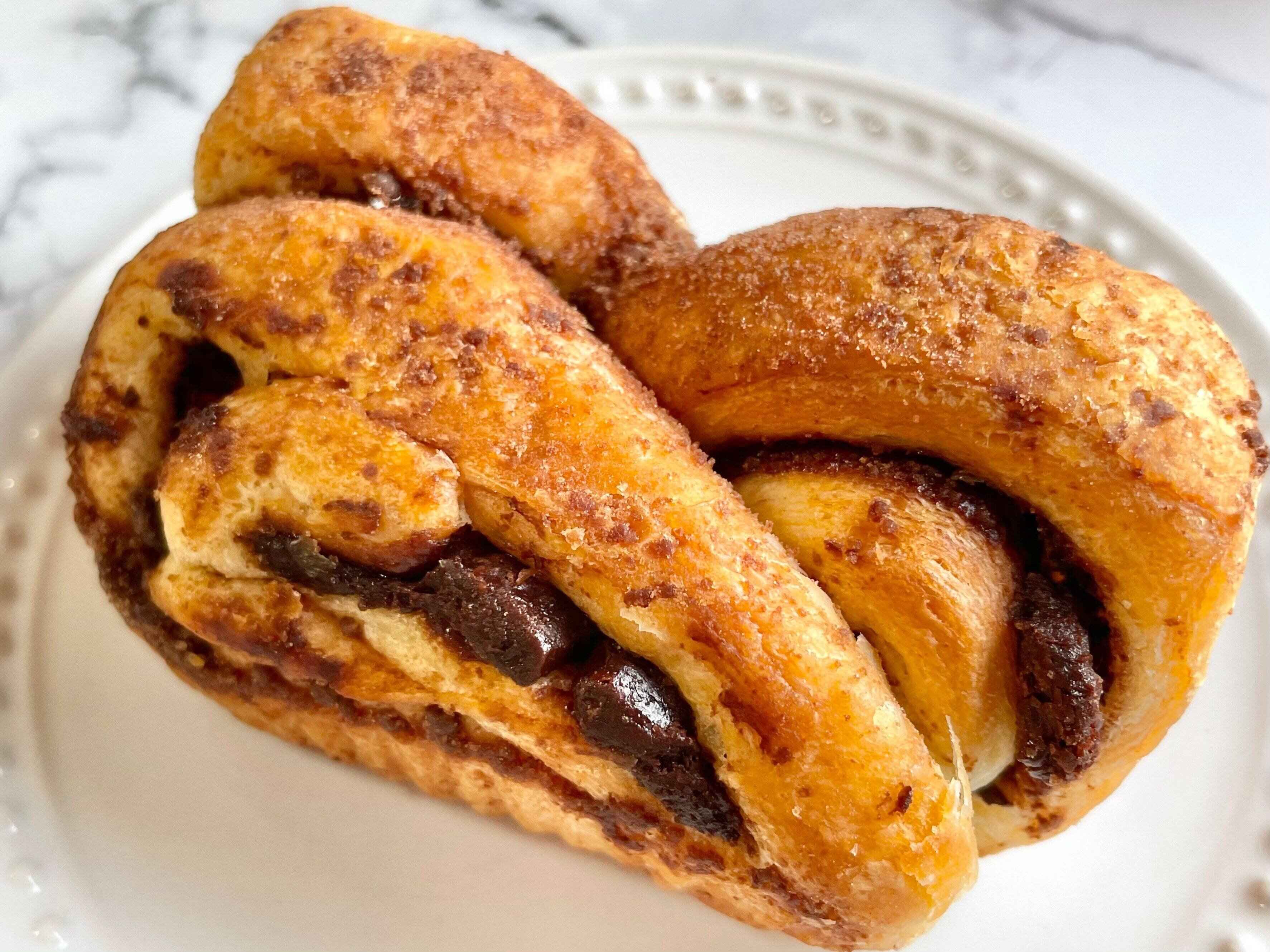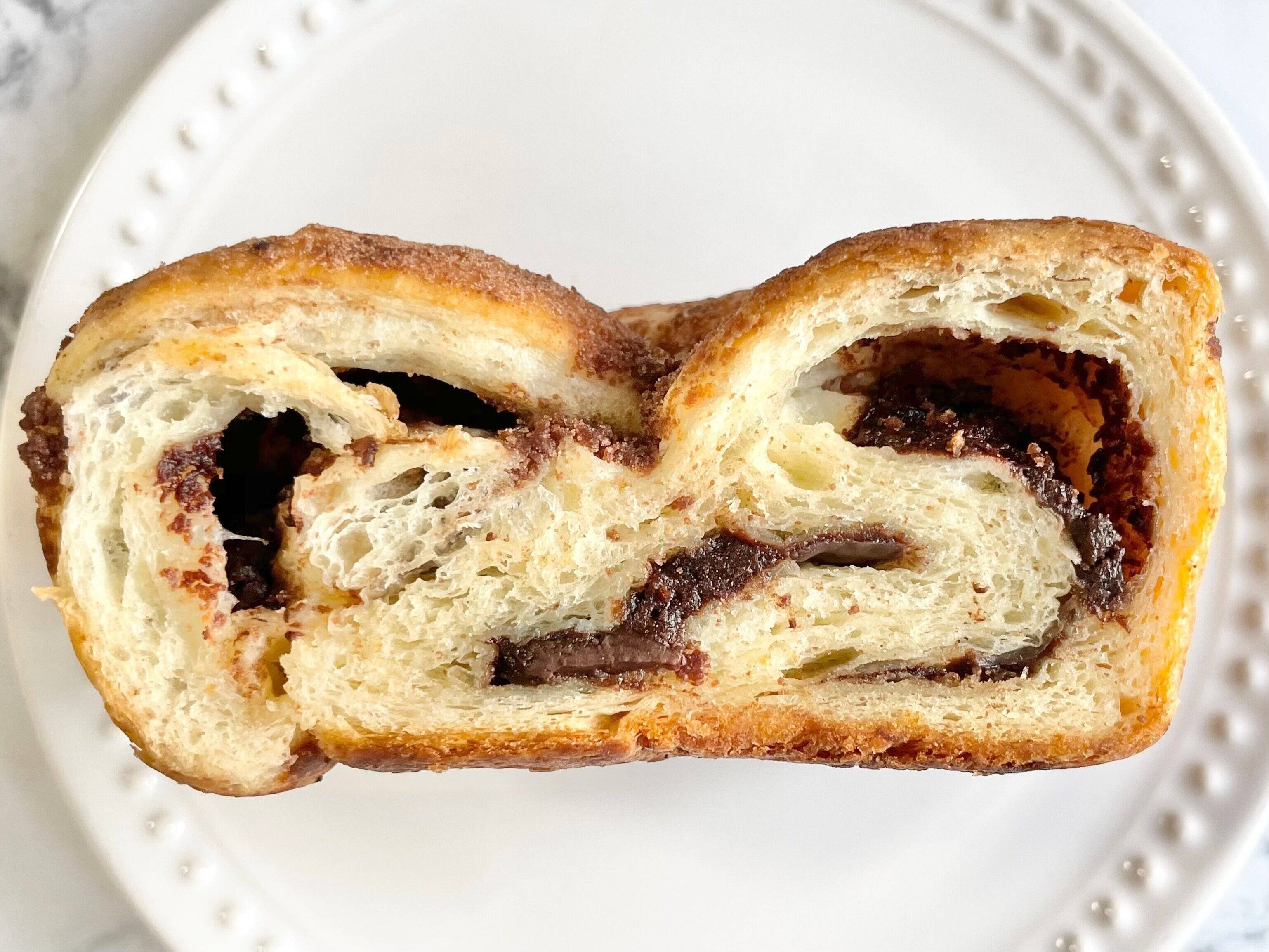 ニューヨークで流行っている、中に甘いチョコレート味のペーストが巻き込まれた、まるでチョコレートケーキのようなおいしいパンのことです。