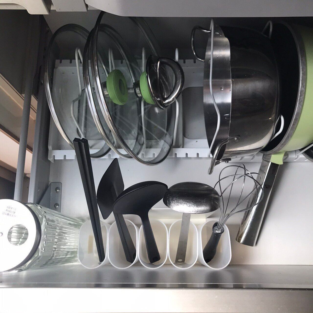 ゴチャゴチャになりがちなキッチン調理器具も、厳選して個別に収納し、定位置を決めればとっても使いやすくなります。ぜひ、参考にしてみてくださいね。