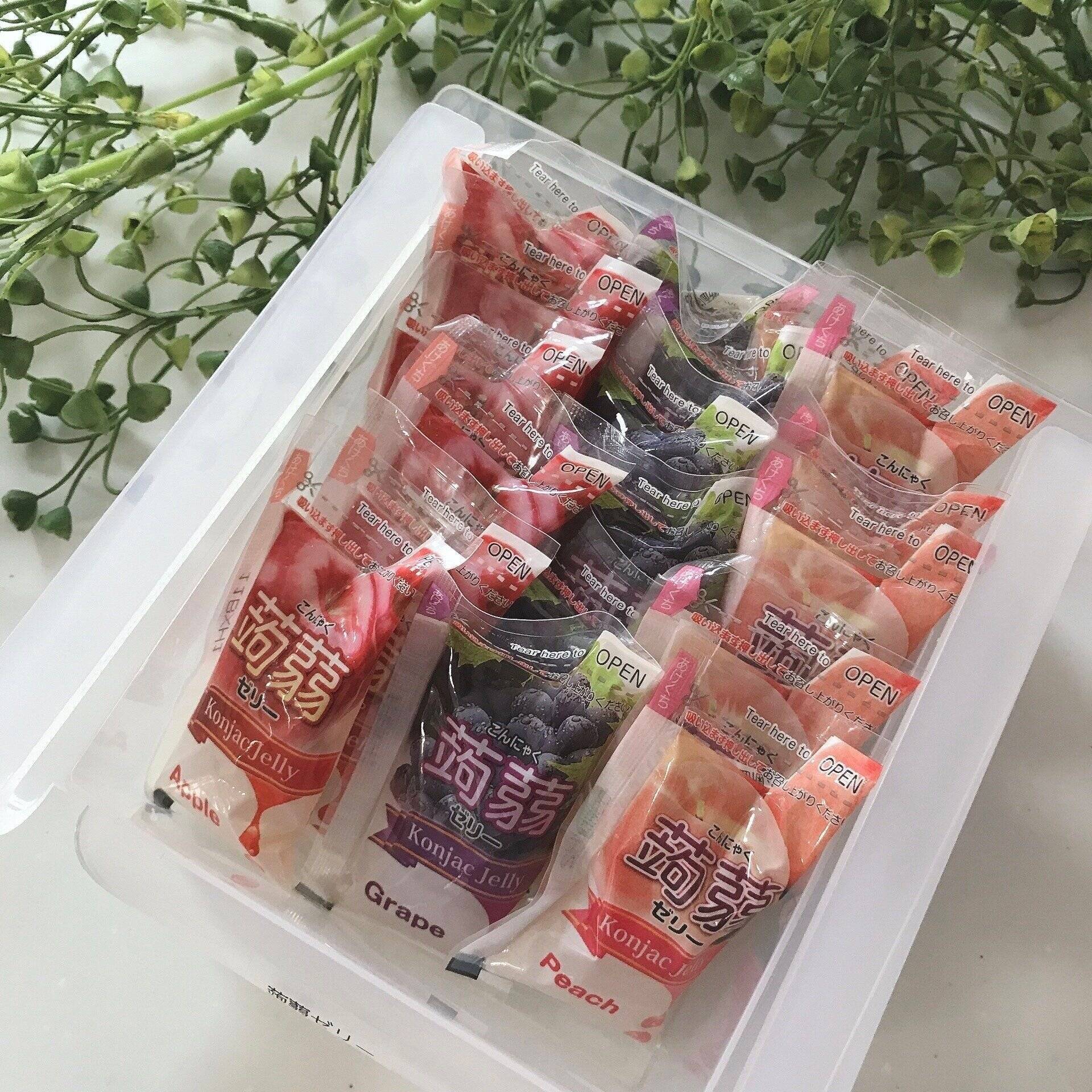 我が家では常備しているこんにゃくゼリーをこのトレーに収納しています。
