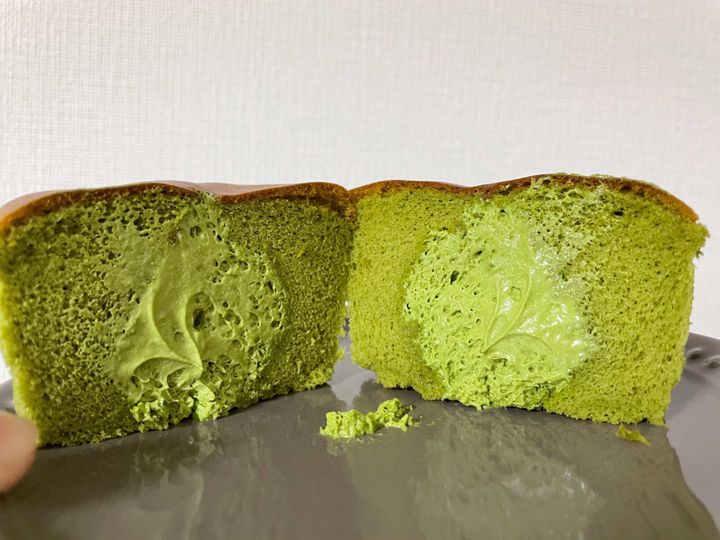 次に甘めの抹茶クリームが口いっぱいに広がり、カステラのふわふわと、抹茶クリームのとろとろが口の中で楽しめます。