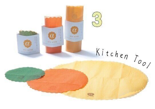 フェアトレードのオーガニックコットン、岐阜県のみつろうなど、土に返る自然素材のみを使用。手の温かさで柔らかくなるので、あらゆる形にフィット。野菜の切り口や器へのラップだけでなく、屋外ではお皿代わりにも。洗って繰り返し使えます。aco wrap https://