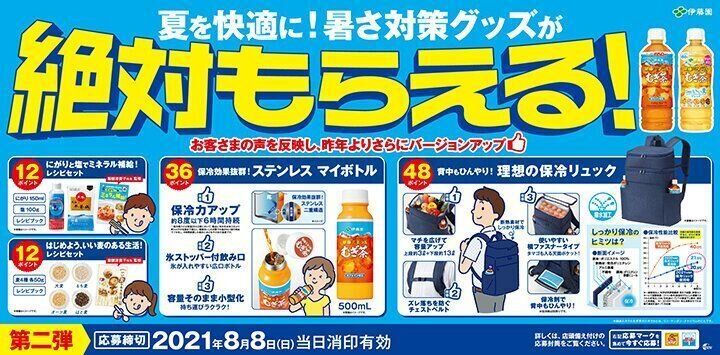 「健康ミネラルむぎ茶」の応募マークを集めて応募すると、夏を快適に過ごす!“暑さ対策グッズ”が絶対もらえるキャンペーン実施中。「背中もひんやり!理想の保冷リュック」「ステンレスマイボトル」など、楽しく夏を快適に過ごせる景品がいろいろ。キャンペーンは6月14日(月)~8月8日(日)当日消印まで!