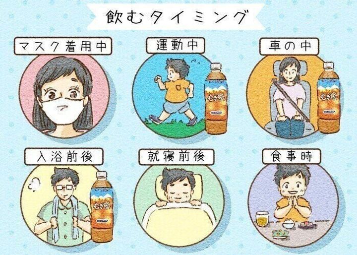 たくさん汗をかく外遊び中やその前後、お風呂の前後、就寝前後や食事のタイミングで飲むとよいでしょう。