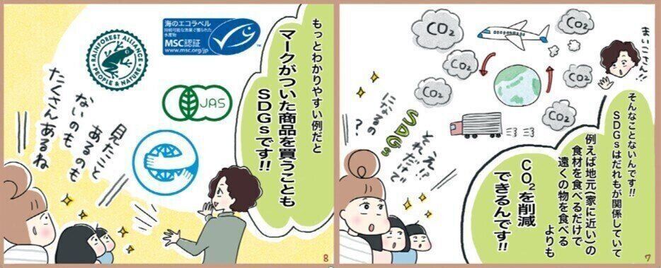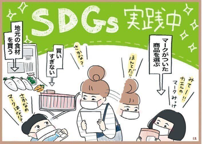 使う責任を果たすためにも、ふだんのお買い物では、できるだけSDGsに貢献する物を選ぶようにしたいですね。商品についているさまざまなマークを親子でチェックしてみましょう!