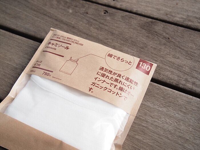 通気性が良く、速乾性にも優れた蒸れにくい肌着。なんと綿100%でつくられています。意外と綿100%の製品は高価なのですが、無印良品では790円で購入することができます。肌着ともなると複数枚所持する必要があるので、嬉しい価格ですね。