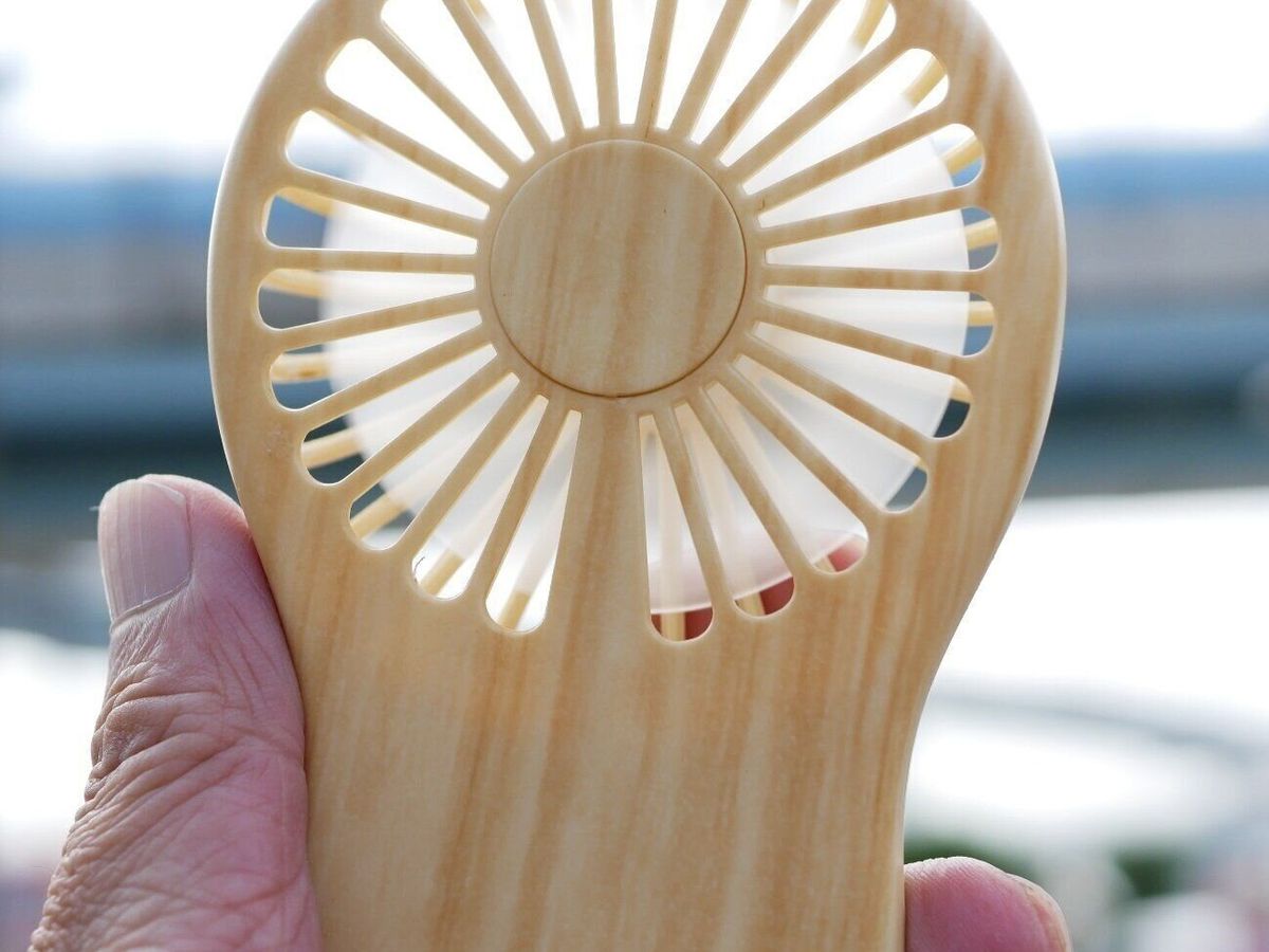 しばらく持ち歩いてみましたが、この便利さに慣れてしまうと、手放せなくなってしまいます。「ハンディファン」を持っていないと、扇子であおぐのが「メンドウでしんどい」と感じるようになってしまいました。困ったものです……。