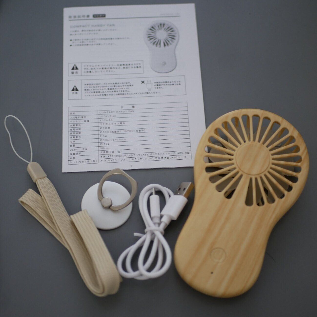 ちなみに付属品のリングは、ダイソーでは「スマホリング」として110円で売っているものと同じような目的のリング商品です。スマホリング分を金額から差し引くと、この便利な扇風機、めちゃくちゃお得に感じませんか?