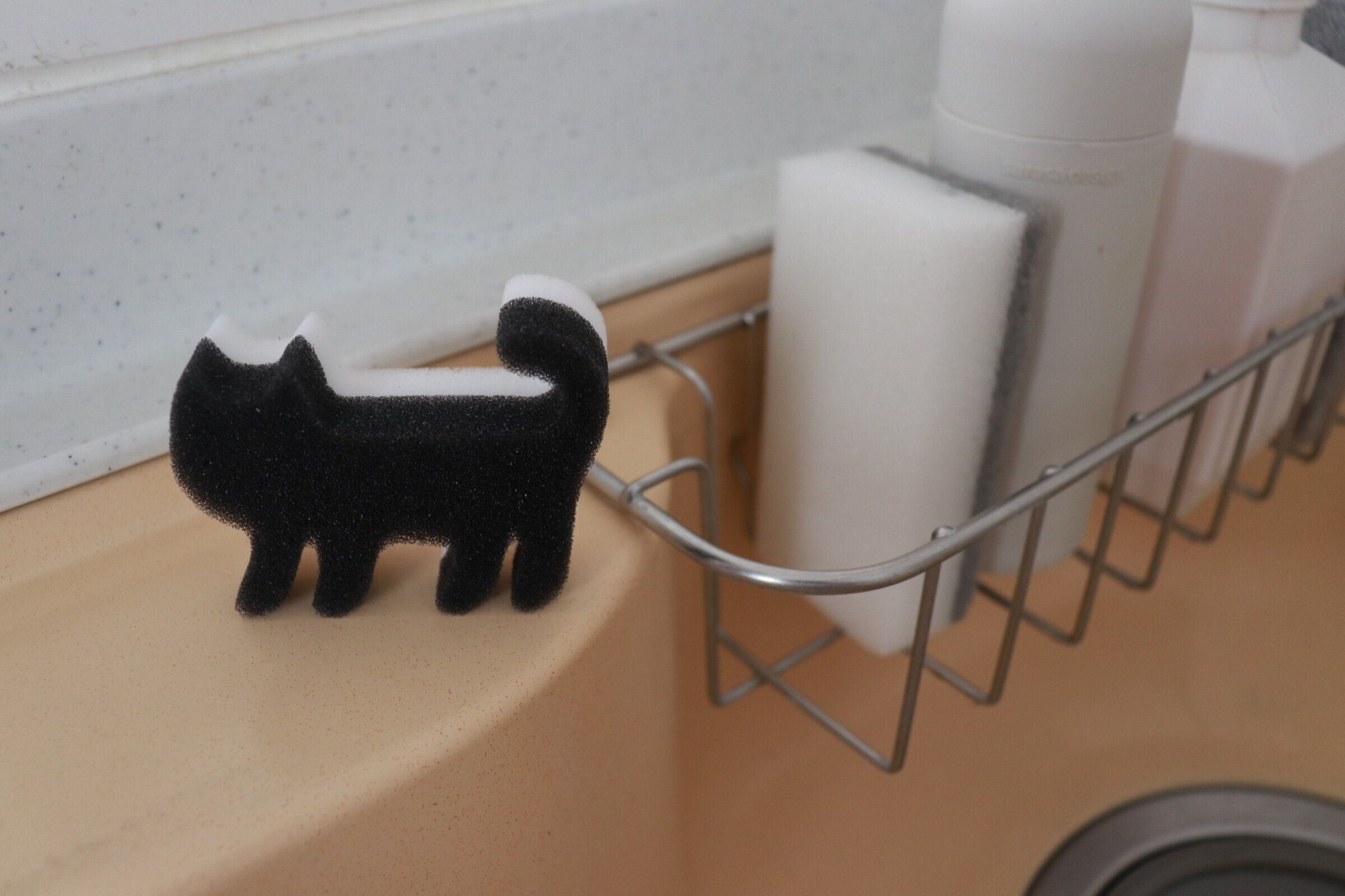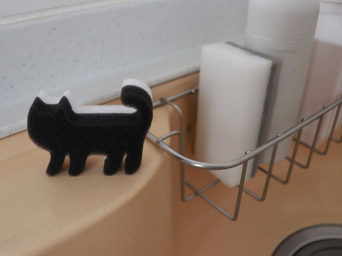 スポンジもふきんと同じように出しっ放しが多いですよね。ひと昔前はピンクやオレンジ、ブルーなどのカラフルなスポンジが多かったですが、100均でモノトーンのスポンジが買えるのはうれしい!