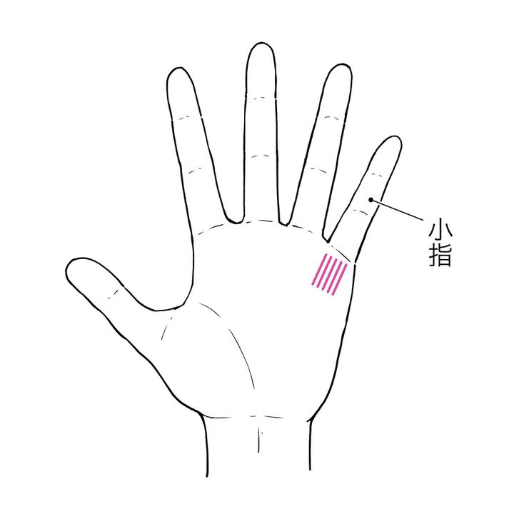 小指の下に縦に走る財産線。この財産線がこまかく3本以上あったら「散財の相」です。